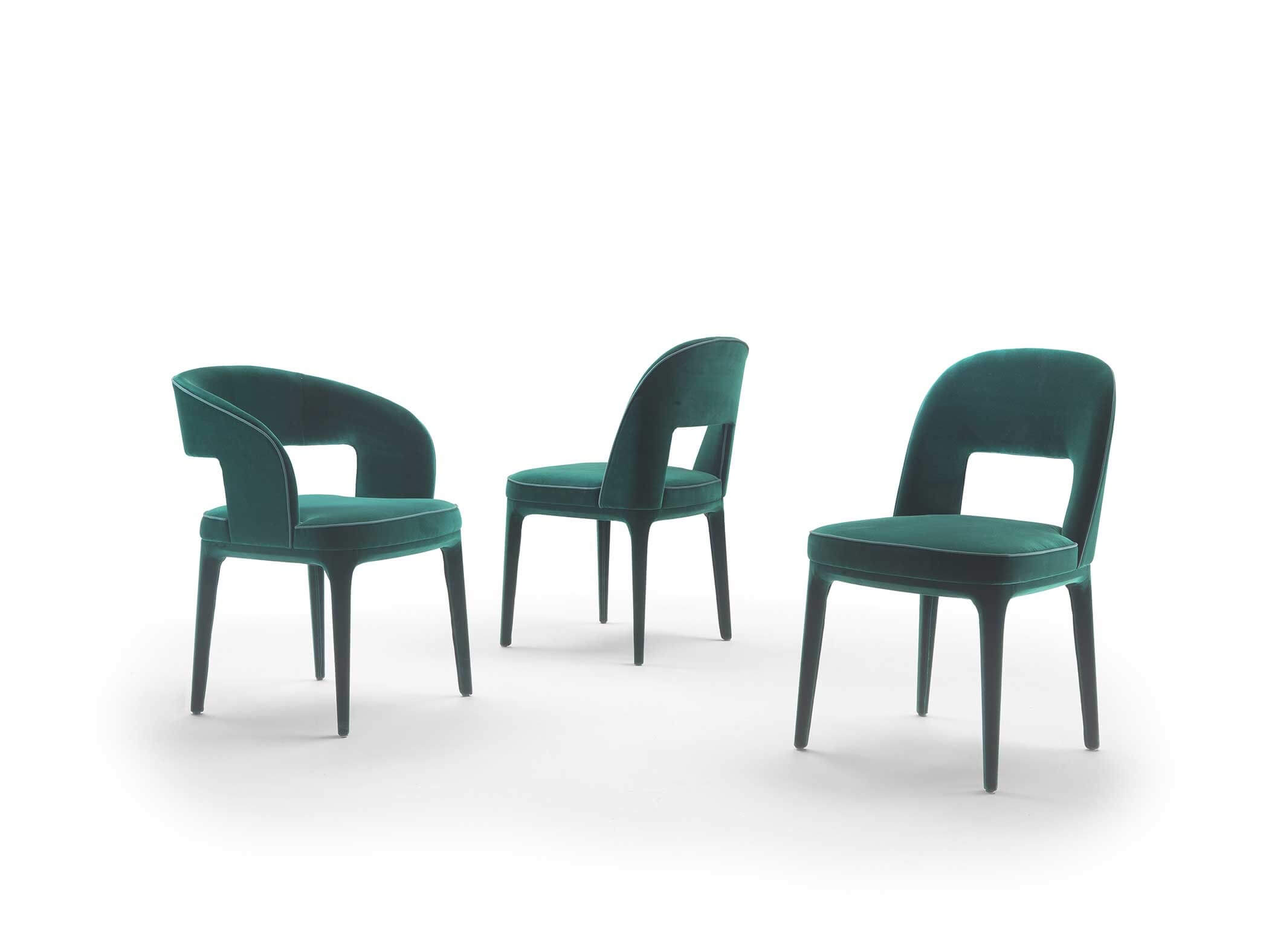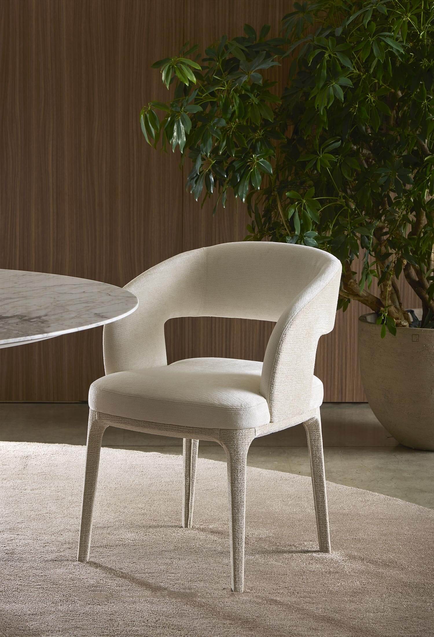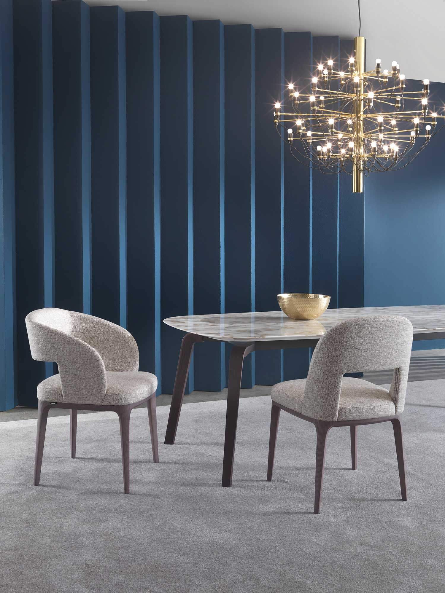 Bea 提供椅子和凳子兩種款式,並可選配扶手,以滿足不同的設計需求。實木底座確保了穩定性和精湛的工藝品質,並可選擇織物或皮革軟墊,打造更精緻的飾面。軟墊座椅提供豐富的布料選擇,更可採用兩種不同的材質(例如織物和皮革)進行組合,營造出精緻的材質對比,展現獨特品味。
