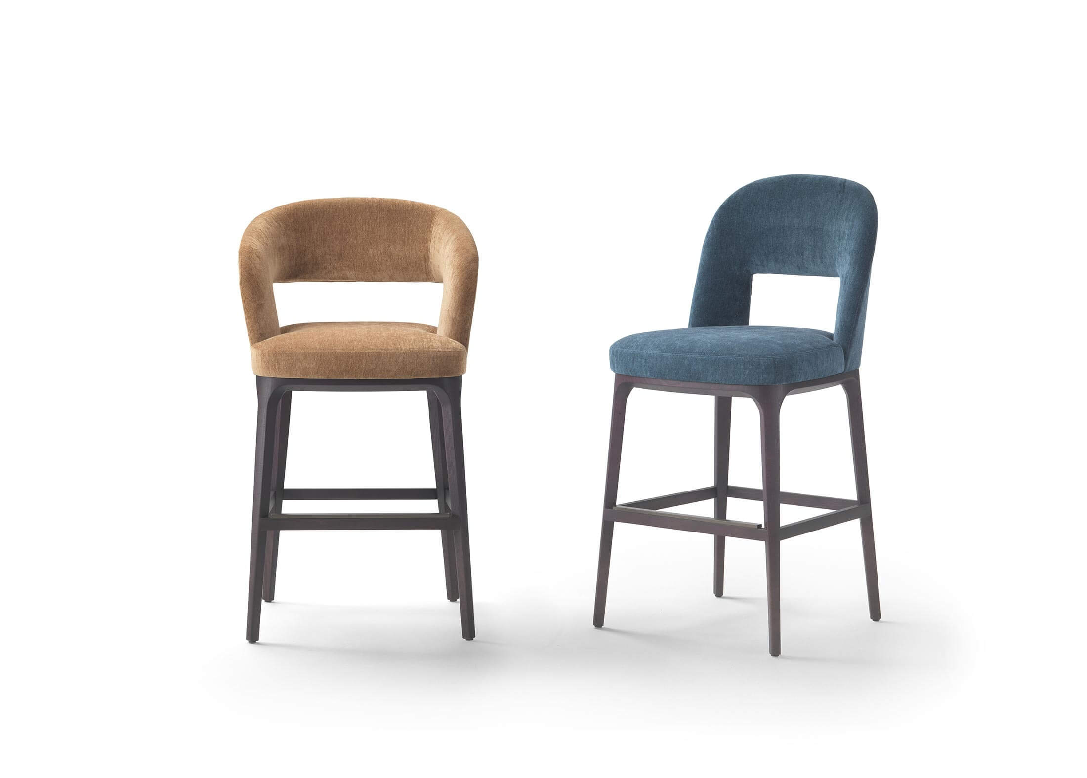 Bea 提供椅子和凳子兩種款式,並可選配扶手,以滿足不同的設計需求。實木底座確保了穩定性和精湛的工藝品質,並可選擇織物或皮革軟墊,打造更精緻的飾面。軟墊座椅提供豐富的布料選擇,更可採用兩種不同的材質(例如織物和皮革)進行組合,營造出精緻的材質對比,展現獨特品味。