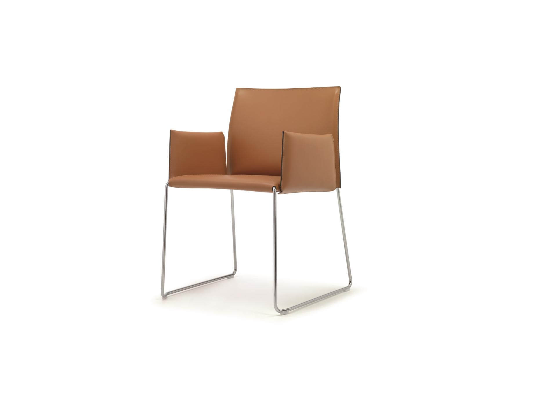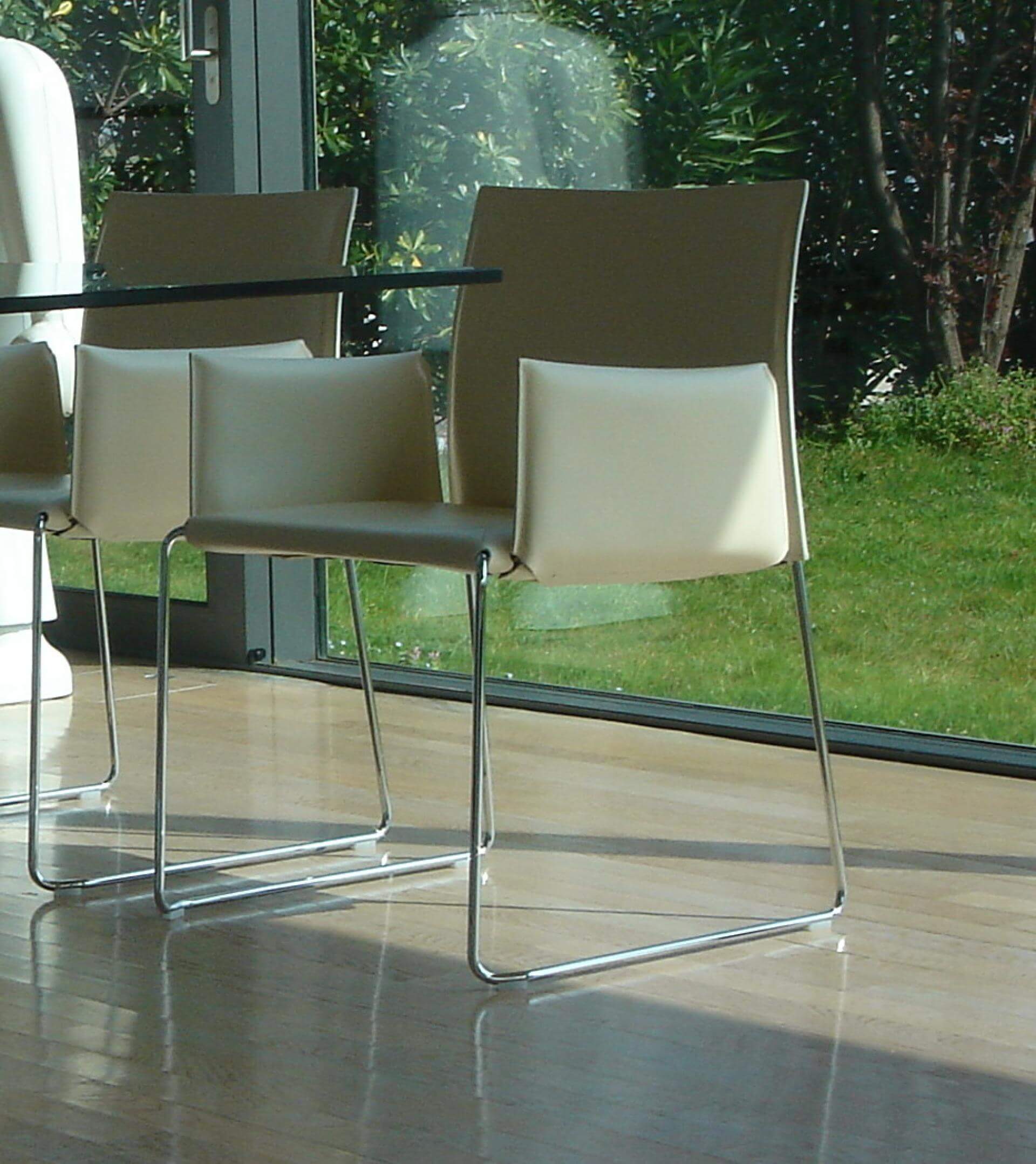 附扶手的椅子,框架採用鍍鉻或噴漆鋼桿(ø12 毫米);座椅和靠背採用不同材質的軟墊和包覆;防滑尼龍腳,座椅下方有交織的彈性帶(標準);座椅套採用黑色技術布料覆蓋的布。