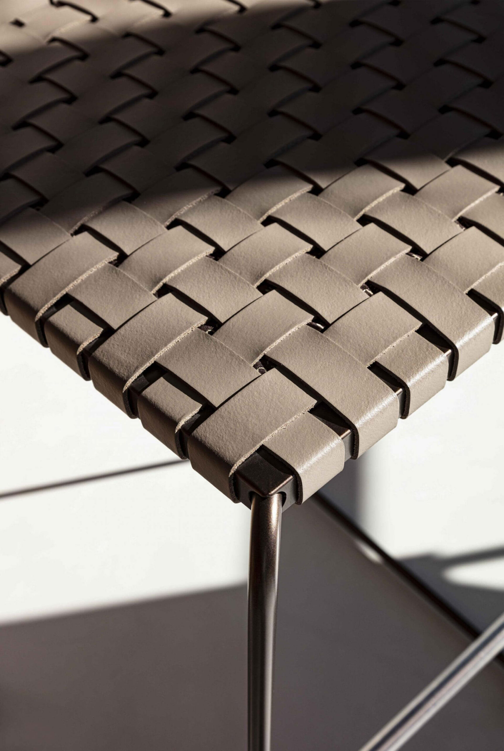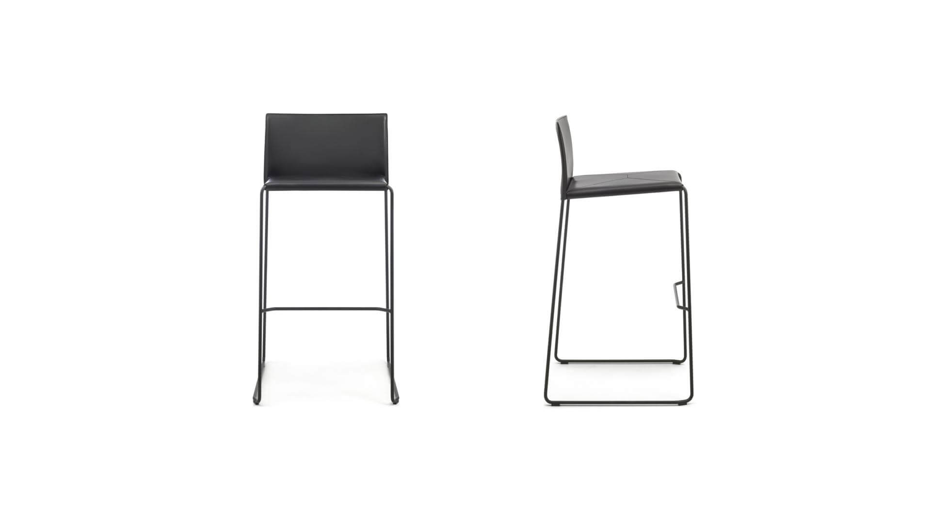 雪橇式底座;圓形截面鋼架,直徑 12 公釐。 座椅下方配有編織彈性安全帶(標配)。 金屬座椅底板,覆以黑色科技布料。