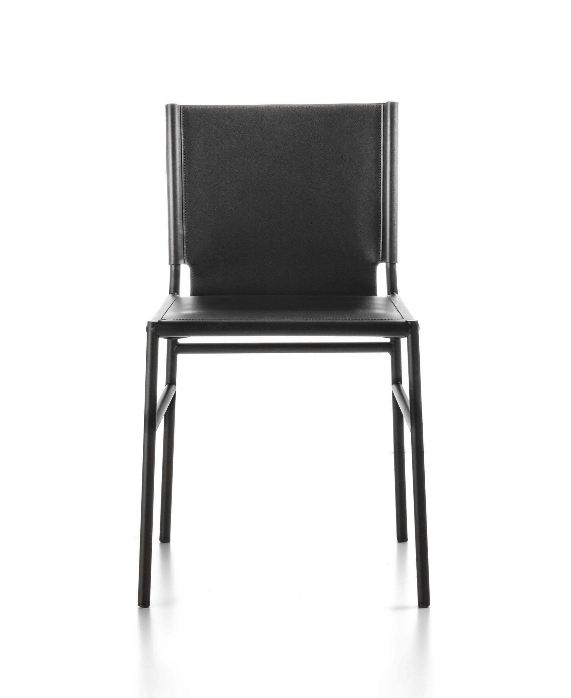 這款座椅造型幾何優雅,適用於客廳和商業空間。管狀結構的垂直線條賦予座椅輕盈而穩固的質感。皮革軟墊則柔化了結構,增添了座椅的個性和精緻感。