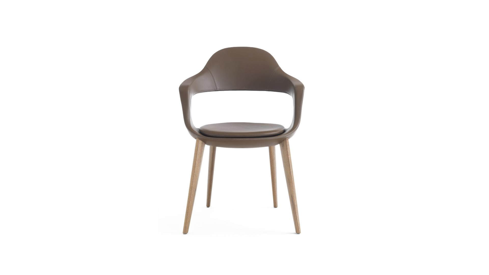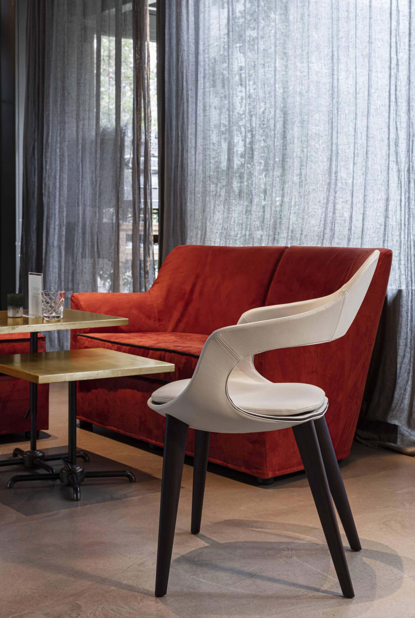 Enrico Pellizzoni 設計的這一系列家具,造型迷人,賞心悅目,兼具優雅與舒適,令人印象深刻。 Frenchkiss 系列不僅限於四條腿的座椅,其產品涵蓋了從簡約的椅子到旋轉凳的各種款式,展現出極高的多功能性。