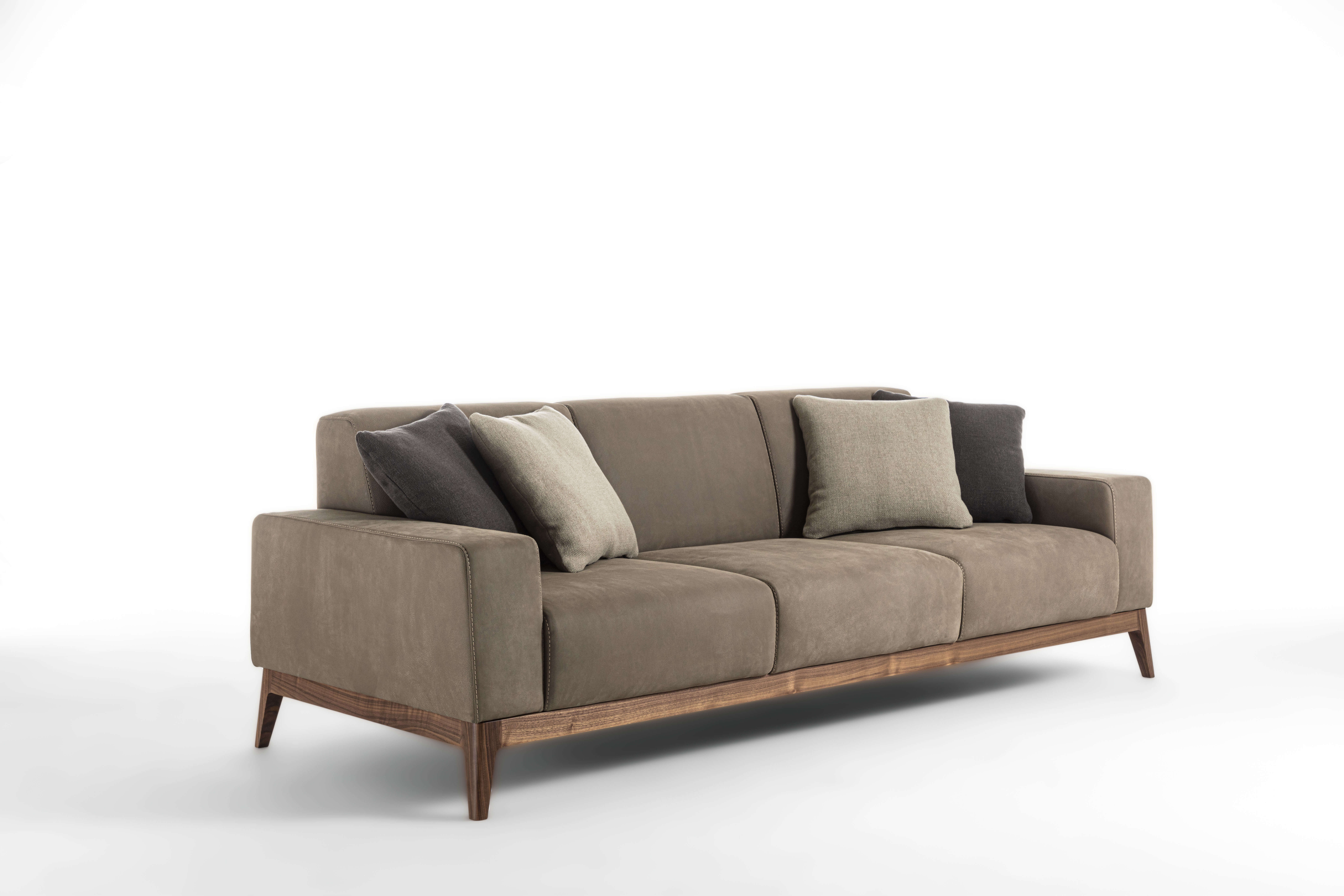 沙發採用實木底座和軟墊結構,扶手可選擇軟墊或木質和維也納稻草材質。