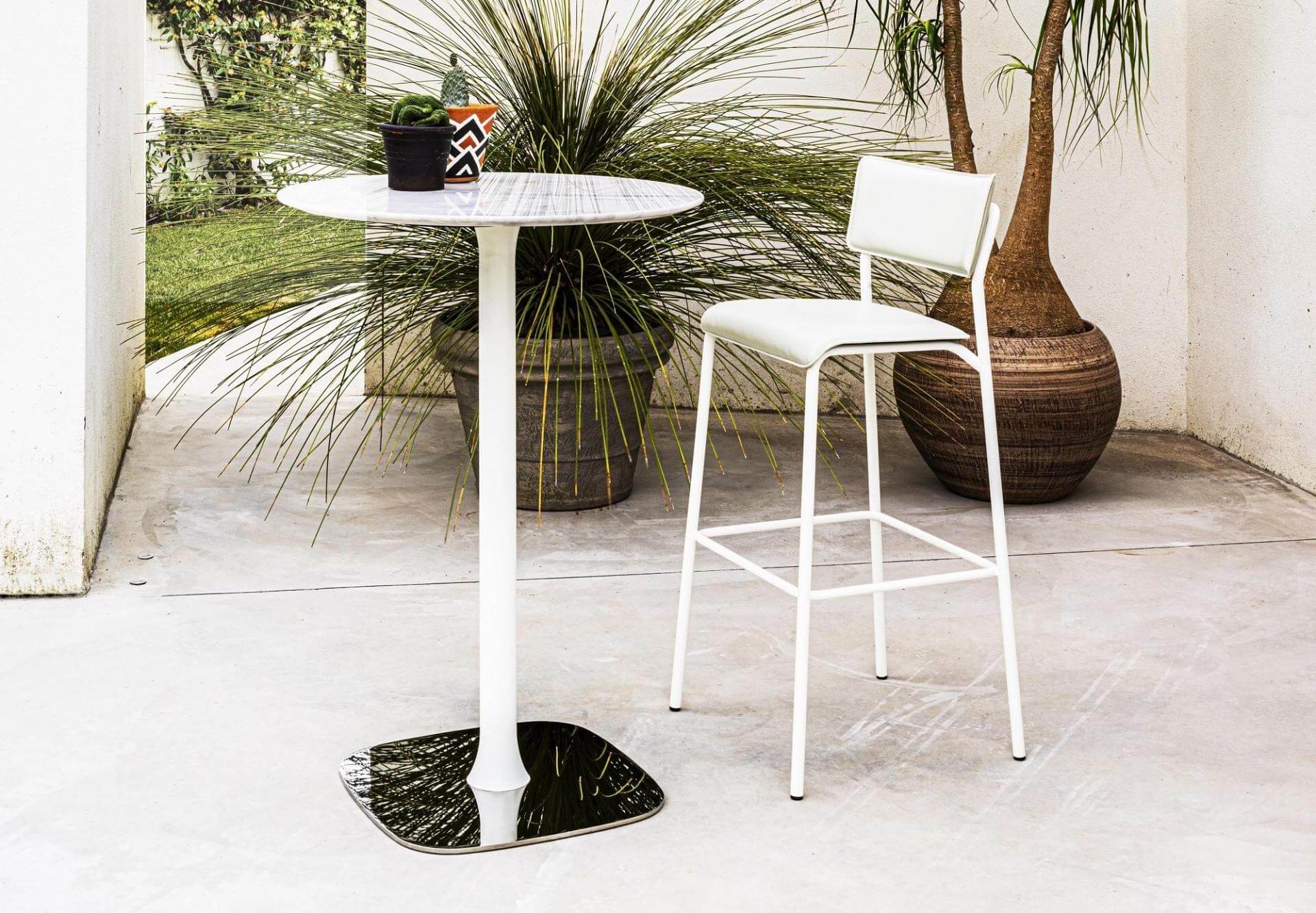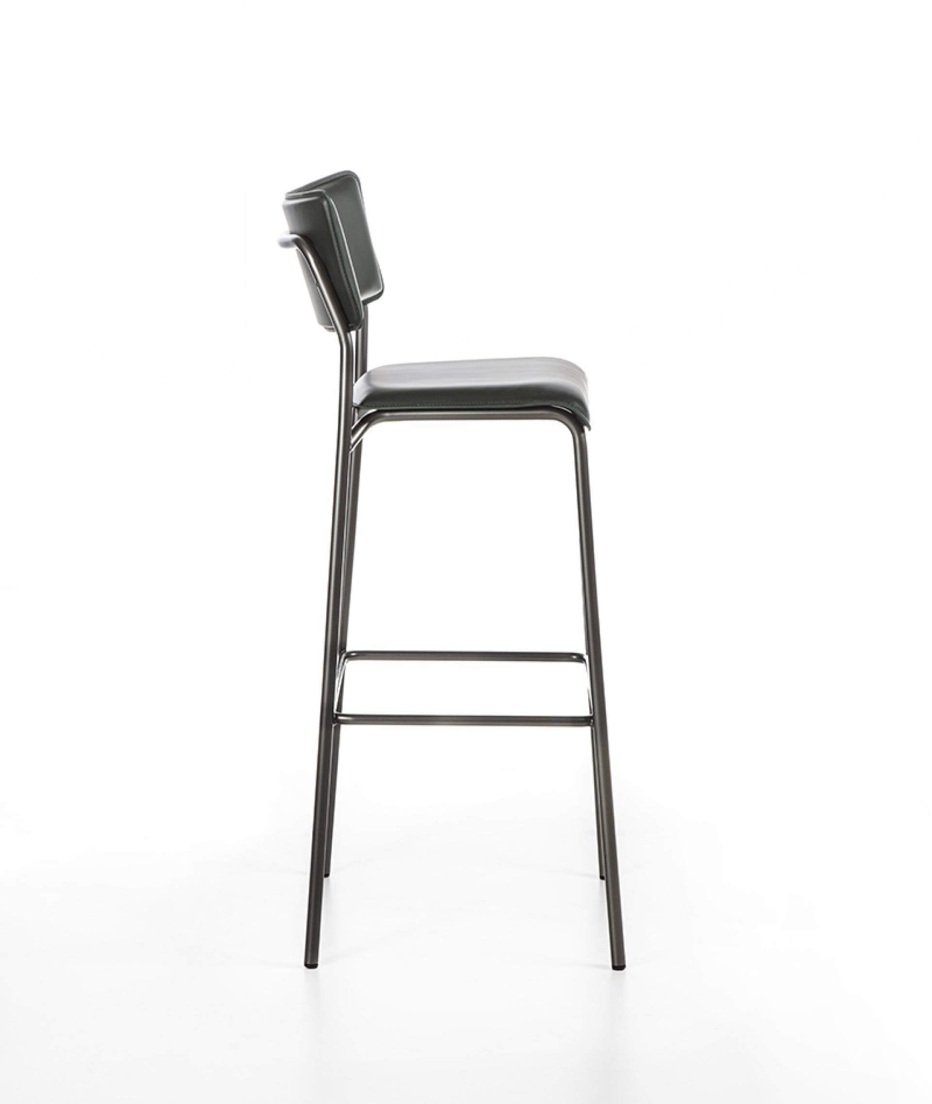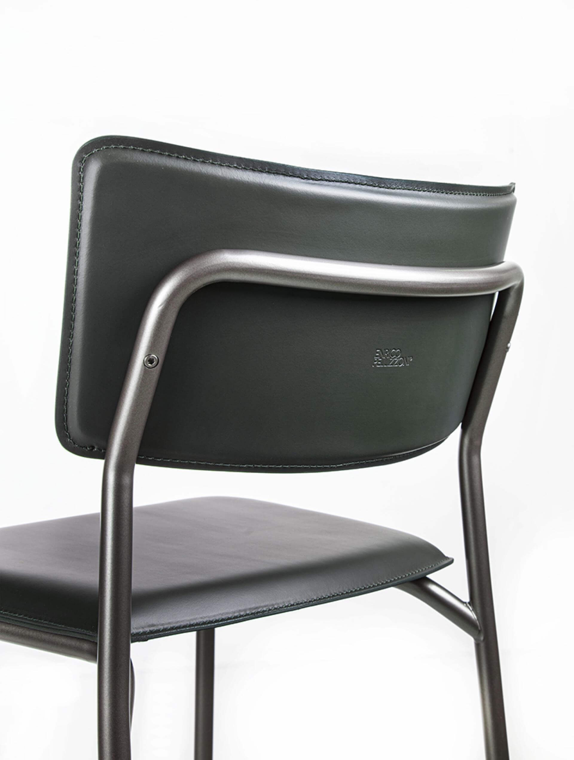 圓形截面金屬管狀結構,提供多種噴漆顏色可選。座椅和靠背採用弧形多層山毛櫸木,並覆以皮革。
