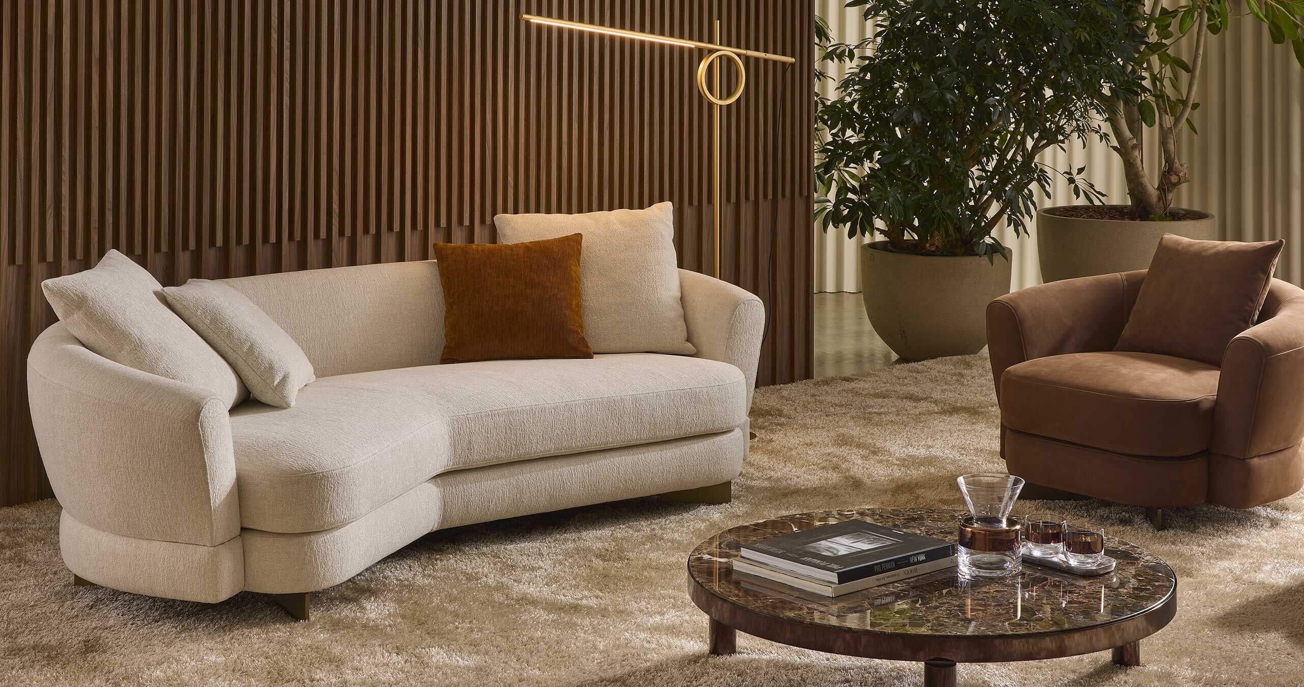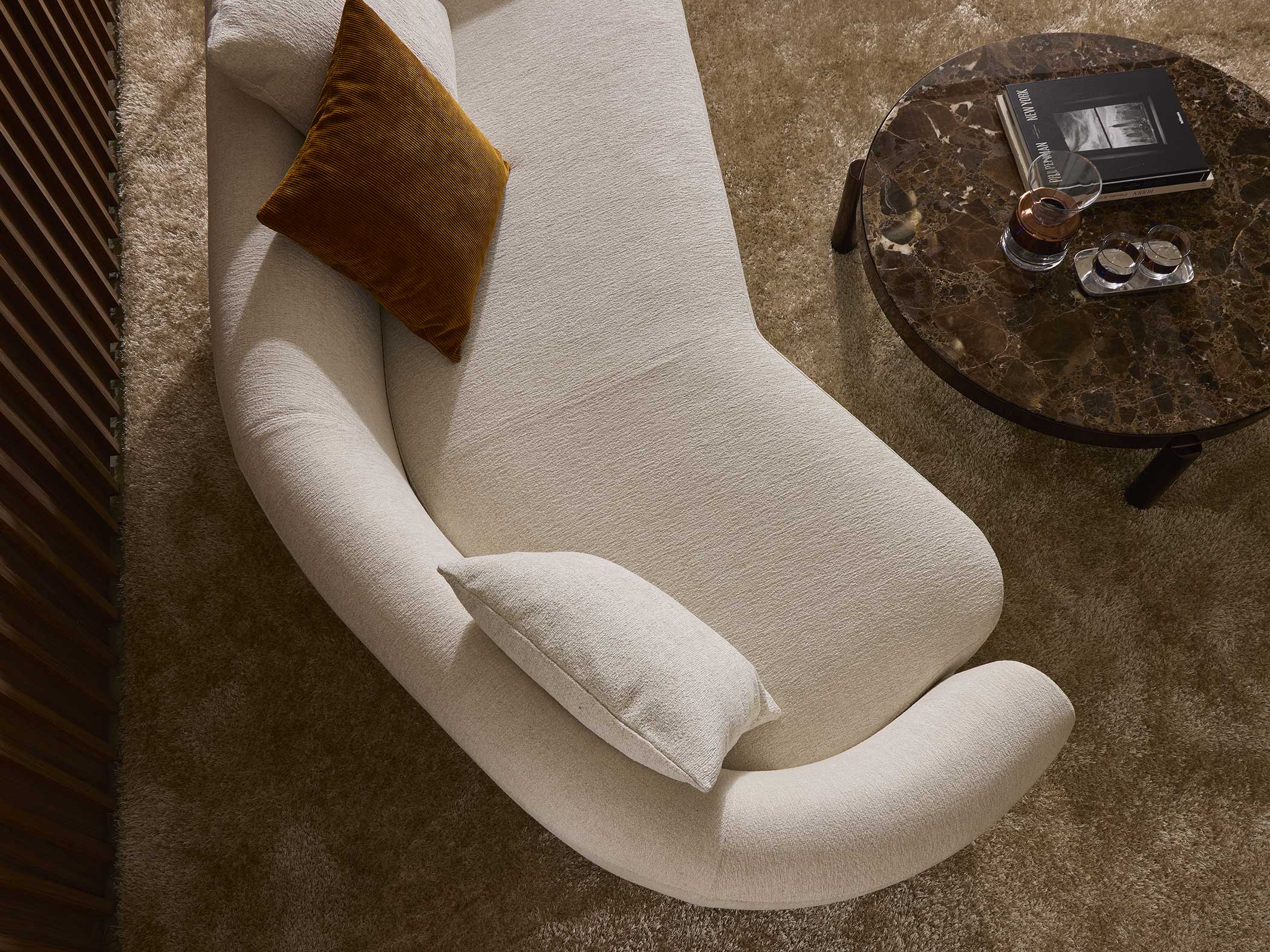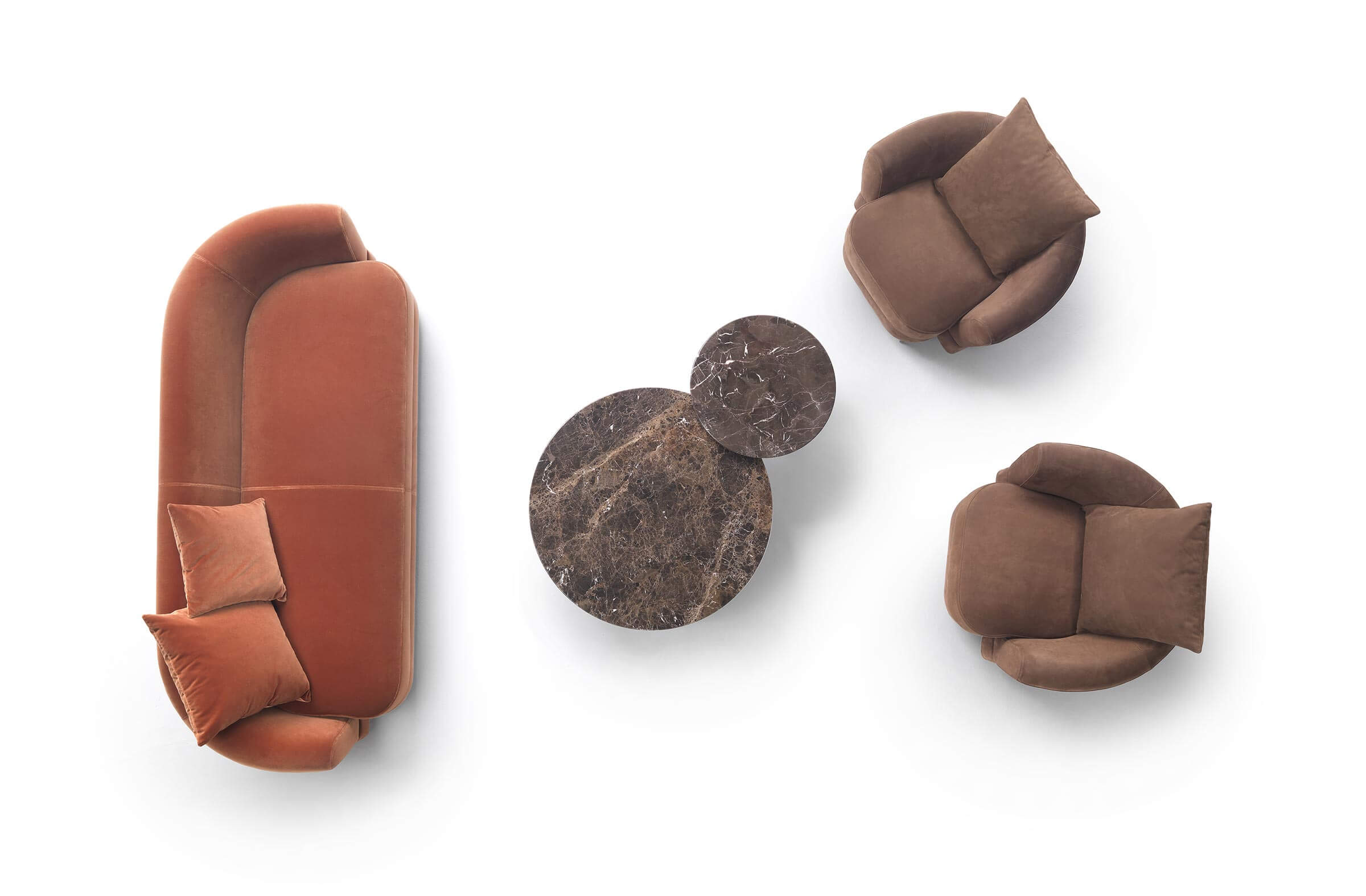 Jeff沙發擁有曲線優美、包裹性強的造型,柔和的線條靈感來自復古魅力。這種風格賦予沙發溫馨舒適的居家氛圍,是營造溫暖舒適環境的理想選擇。我們的產品目錄中提供多種形狀:圓形、略帶棱角的方形和直線形,以滿足不同空間和佈局的需求。