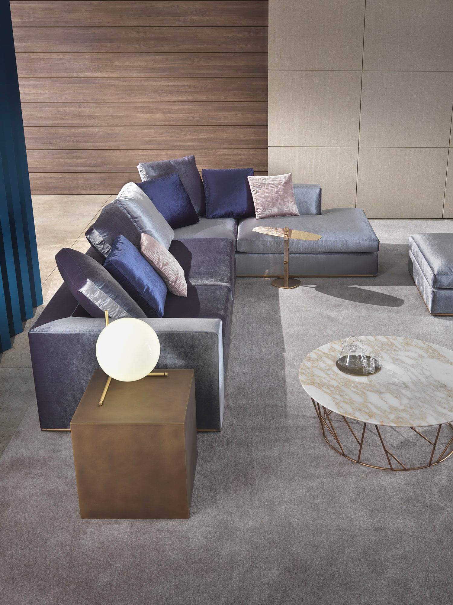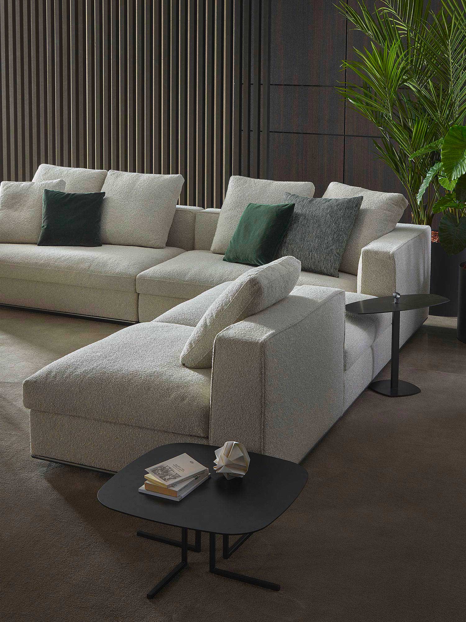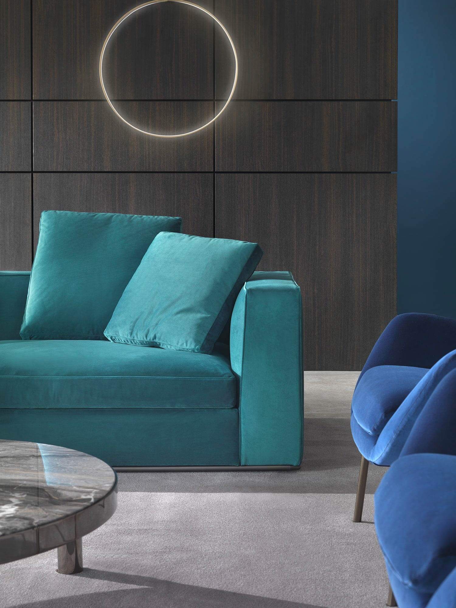 Andy沙發與Matheus沙發的組合,營造出全新的優雅氛圍。 「這款沙發造型別緻,線條現代而富有幾何感。不同的模組組合方式,使其能夠靈活變換,滿足不同項目和空間的需求。
