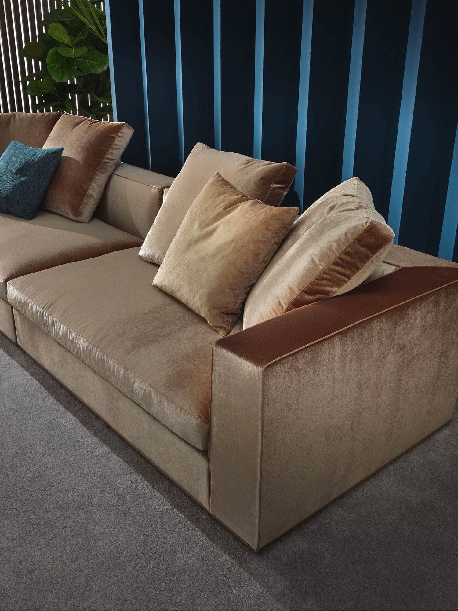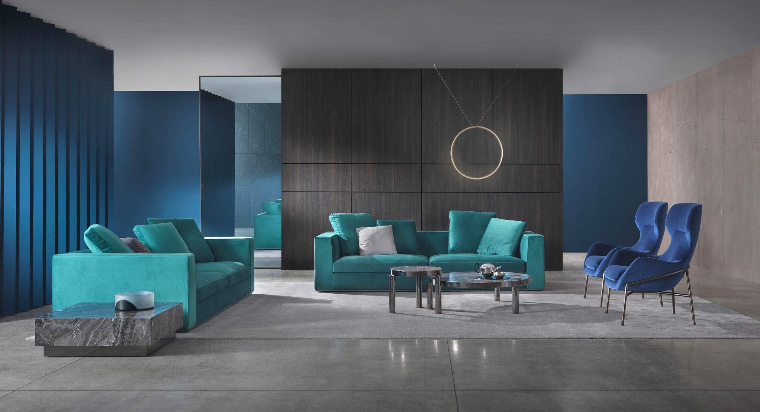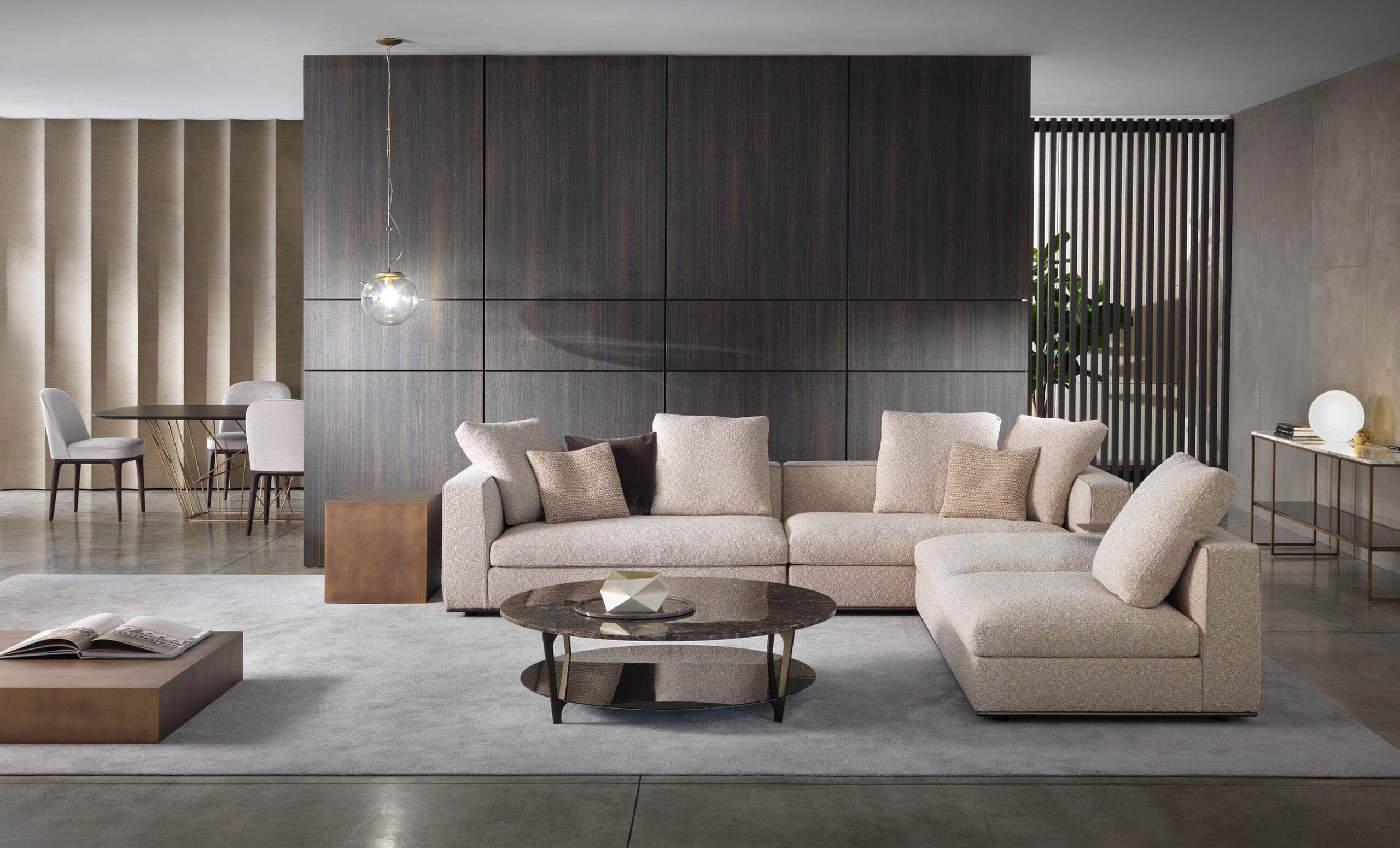 Andy沙發與Matheus沙發的組合,營造出全新的優雅氛圍。 「這款沙發造型別緻,線條現代而富有幾何感。不同的模組組合方式,使其能夠靈活變換,滿足不同項目和空間的需求。