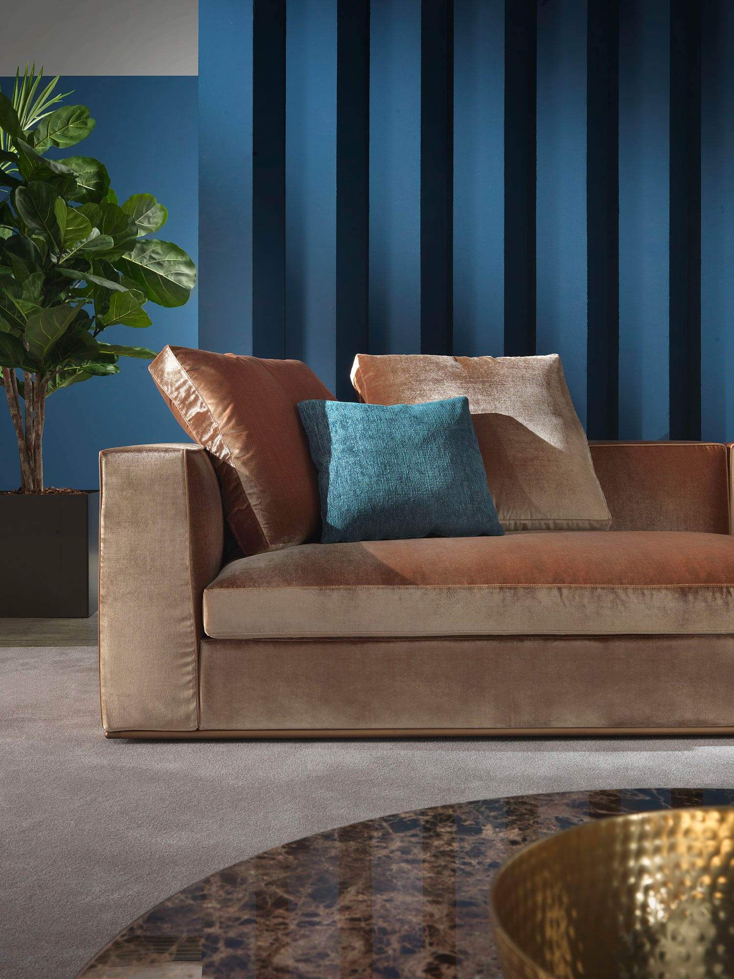 安迪沙發的皮革元素與馬修斯沙發的布藝元素巧妙融合,更突顯了兩款沙發的差異,展現了精湛的工藝。懸掛於地面的金屬框架,將兩款沙發巧妙連接,更添一份優雅氣質。