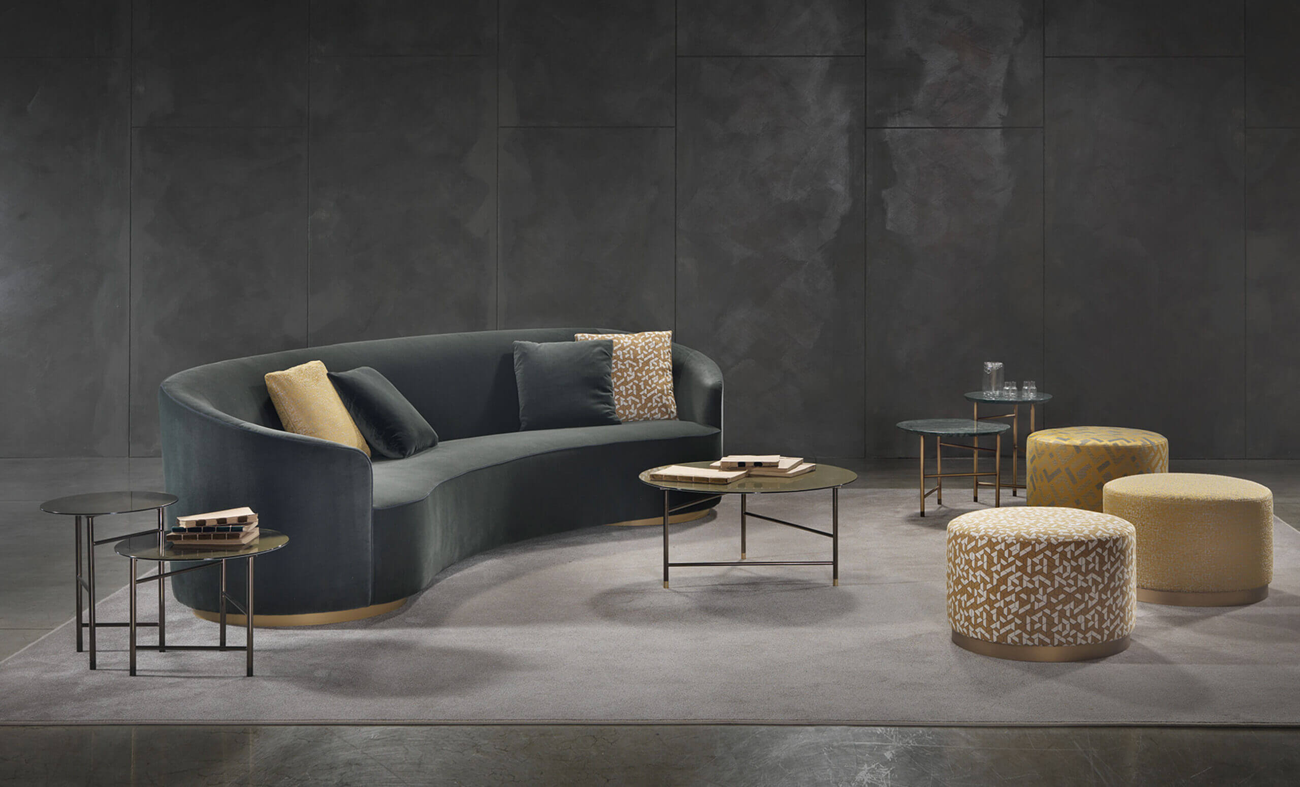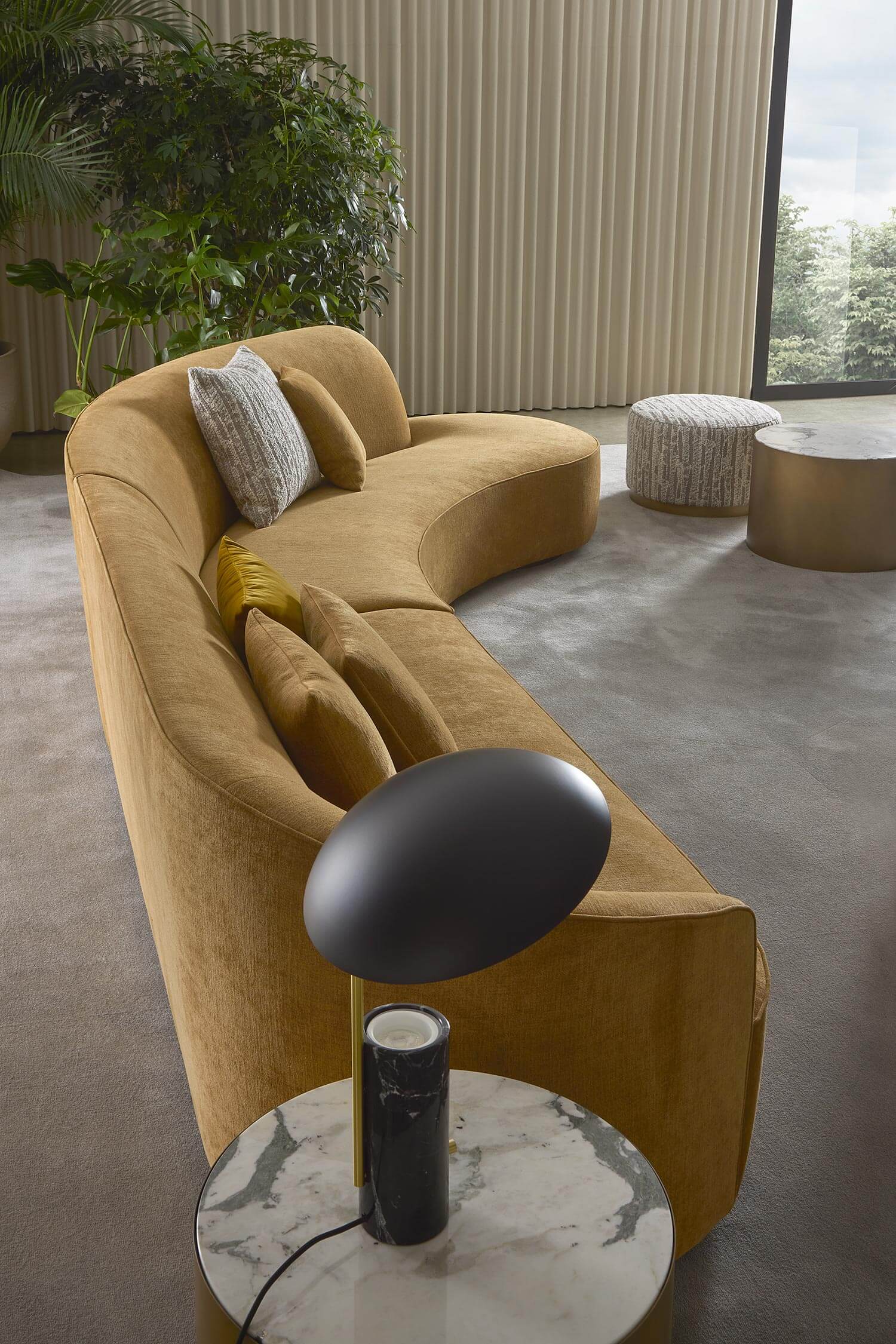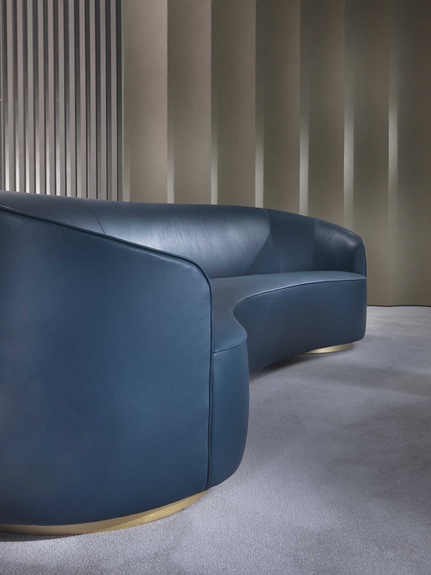 Moon 系列的另一大優勢在於其高度的客製化。得益於我們技術部門的精湛工藝,沙發長度可根據客戶的具體需求進行客製化。此外,您還可以選擇不同的布料和金屬底座飾面,打造個人化的軟墊家具。這種靈活性讓您為任何環境,無論是住宅還是商業空間,打造獨一無二的專屬產品。