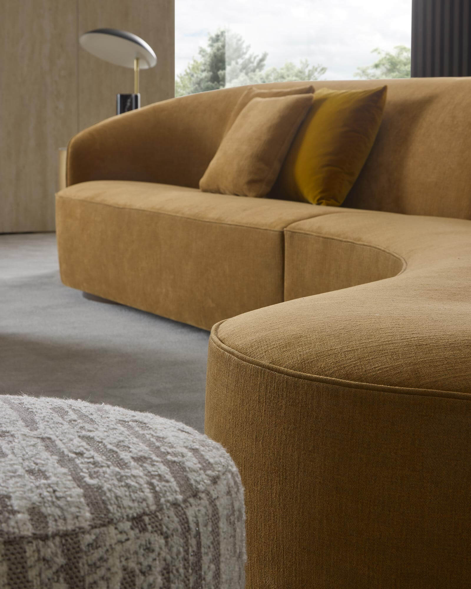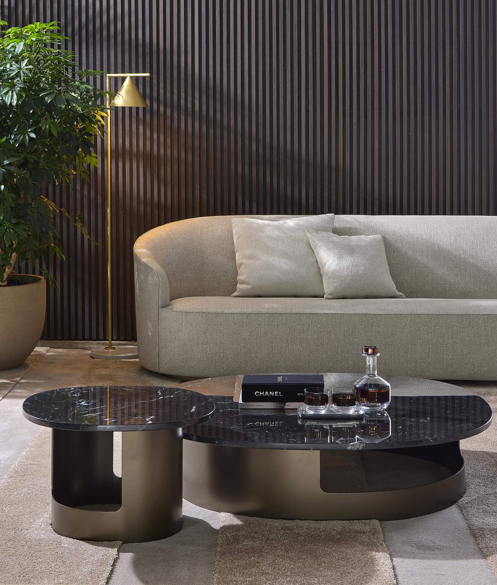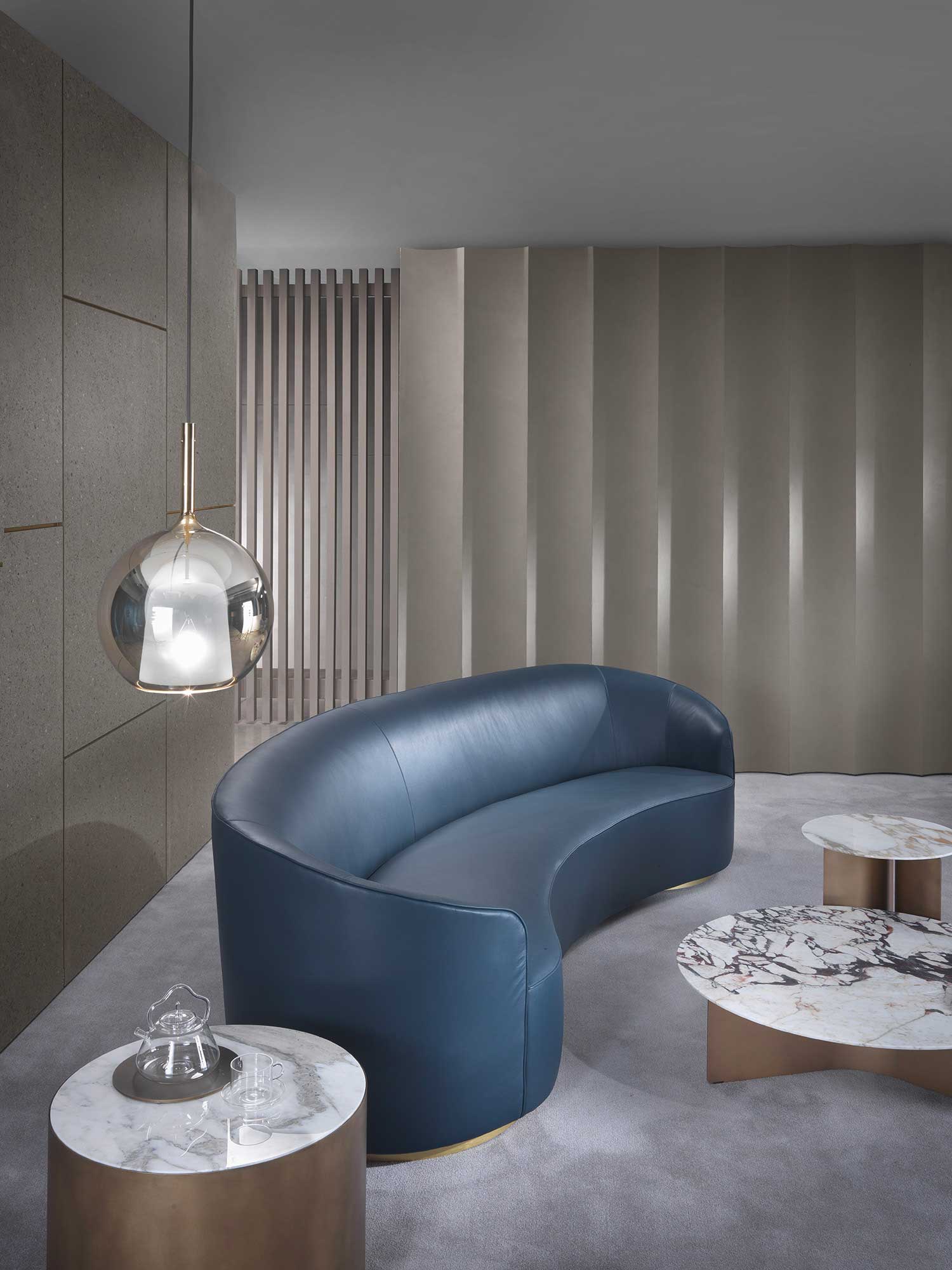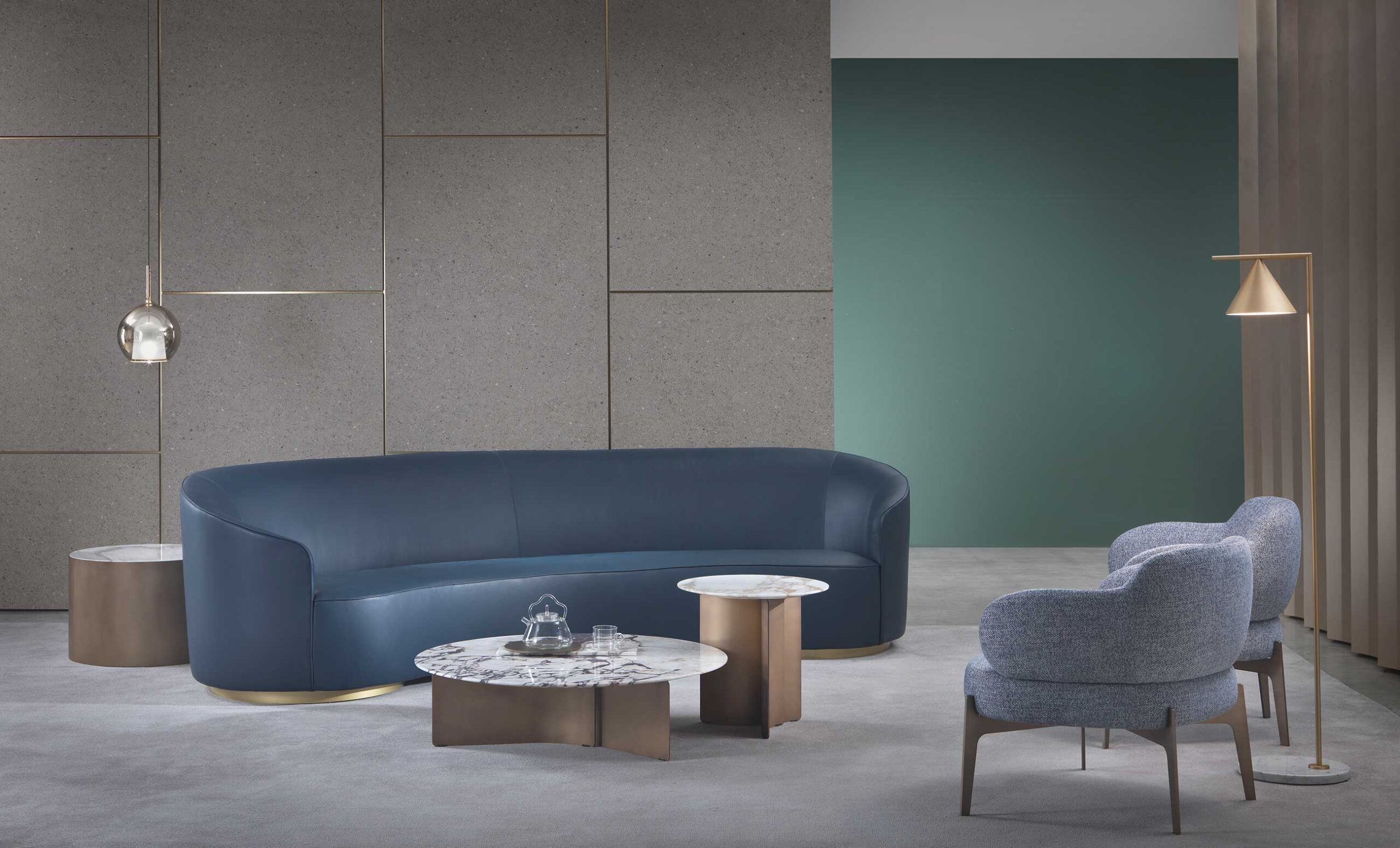 Moon 系列的另一大優勢在於其高度的客製化。得益於我們技術部門的精湛工藝,沙發長度可根據客戶的具體需求進行客製化。此外,您還可以選擇不同的布料和金屬底座飾面,打造個人化的軟墊家具。這種靈活性讓您為任何環境,無論是住宅還是商業空間,打造獨一無二的專屬產品。