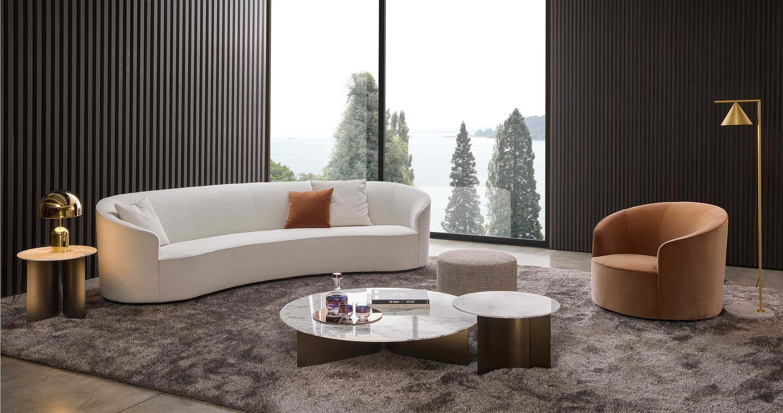 Moon 系列沙發的一大亮點在於其卓越的舒適性,能夠營造溫馨舒適的居家氛圍。該系列提供多種造型選擇,包括直線型沙發、圓形沙發,甚至還有可組合成轉角造型的模組化沙發。這種多功能性使得 Moon 系列沙發能夠適應不同的空間佈局和配置。
