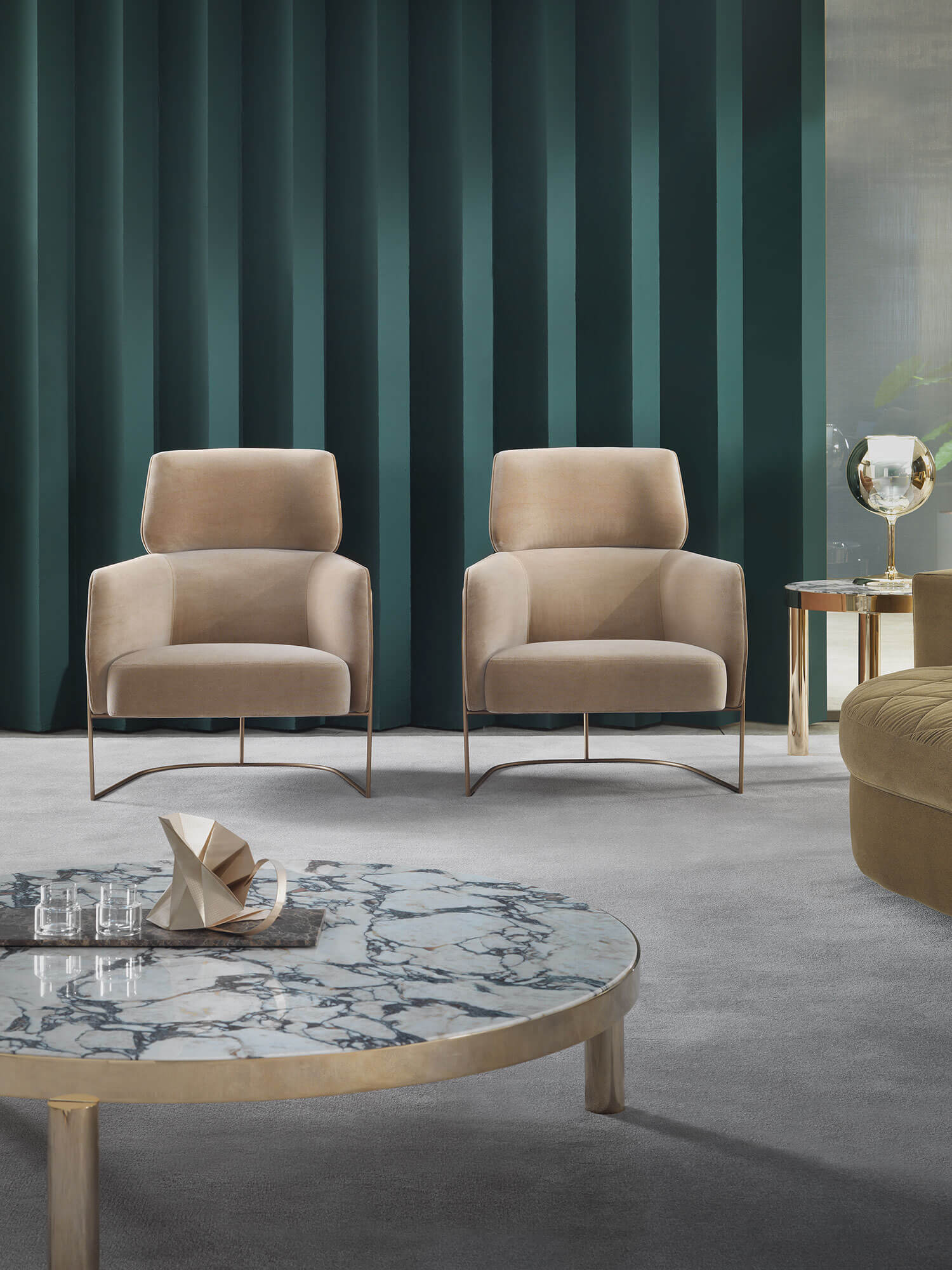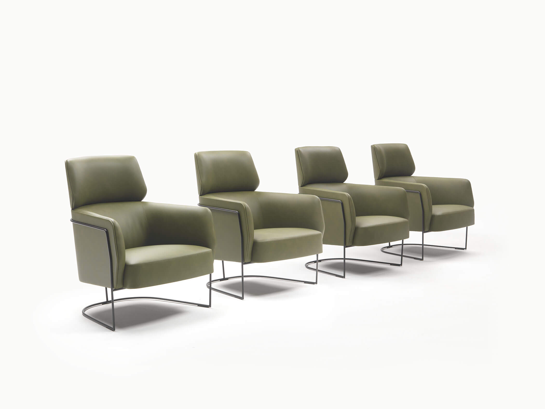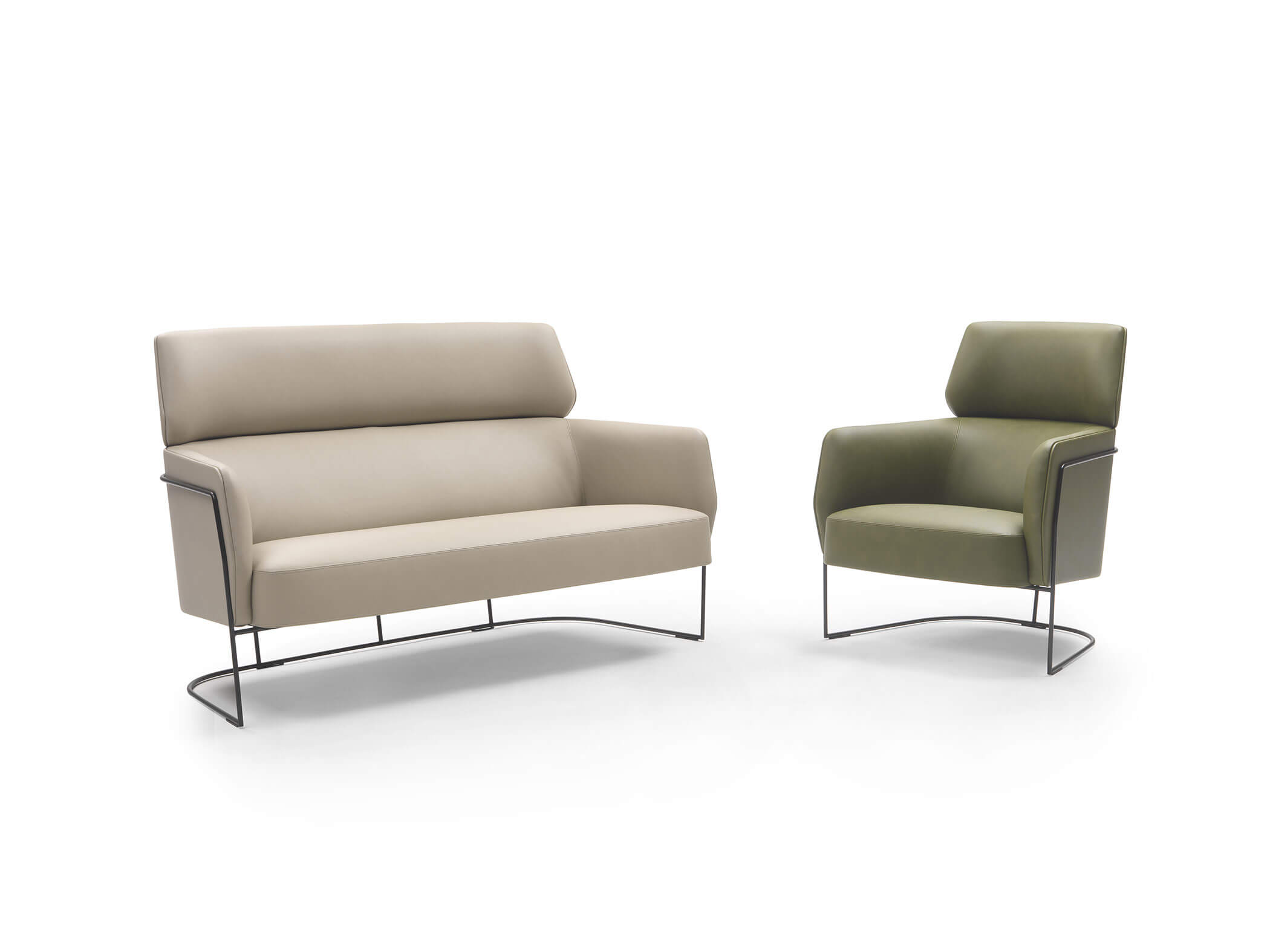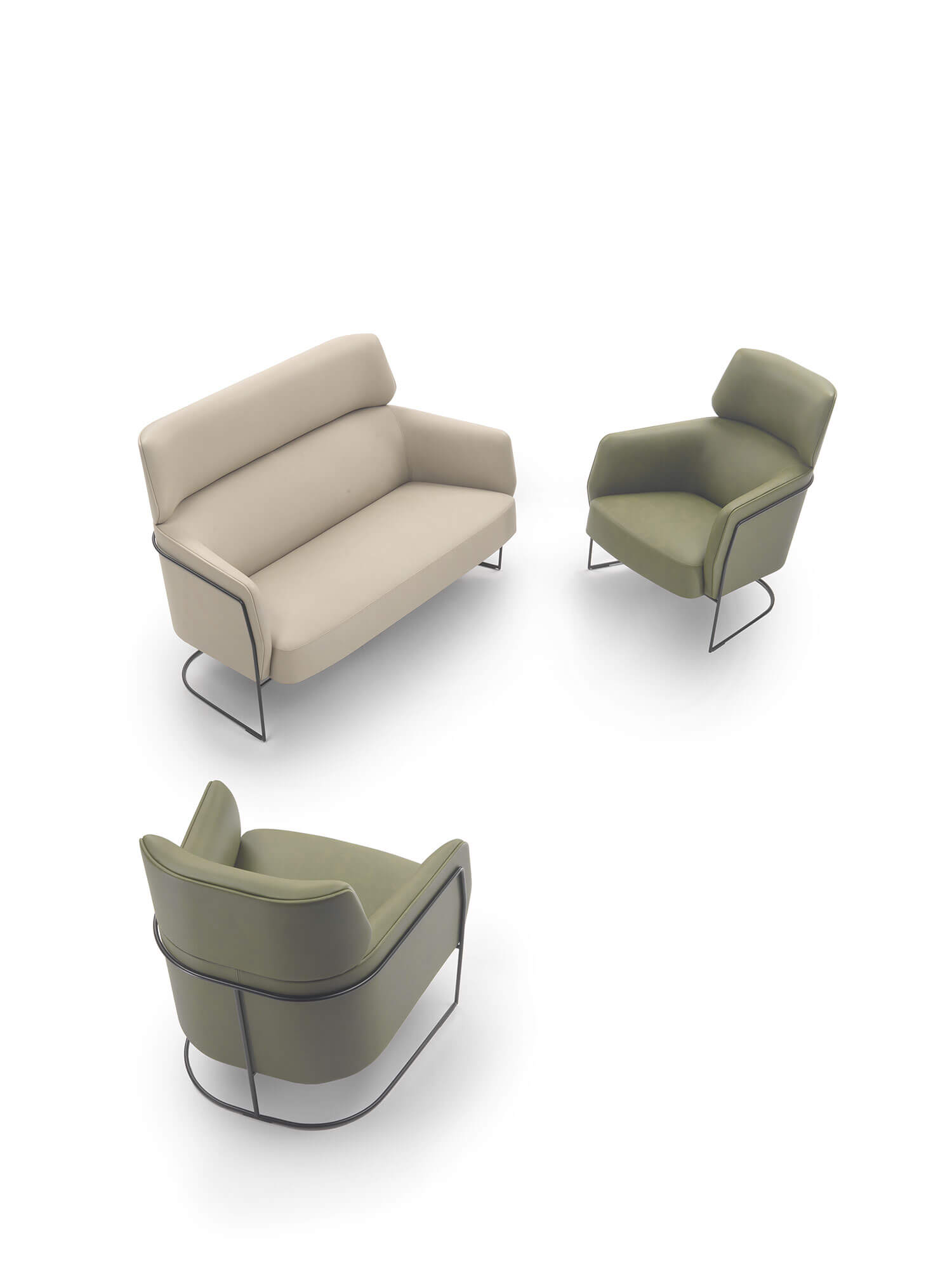 柔和流暢的曲線造型由優雅的金屬框架支撐,並提供多種飾面選擇。