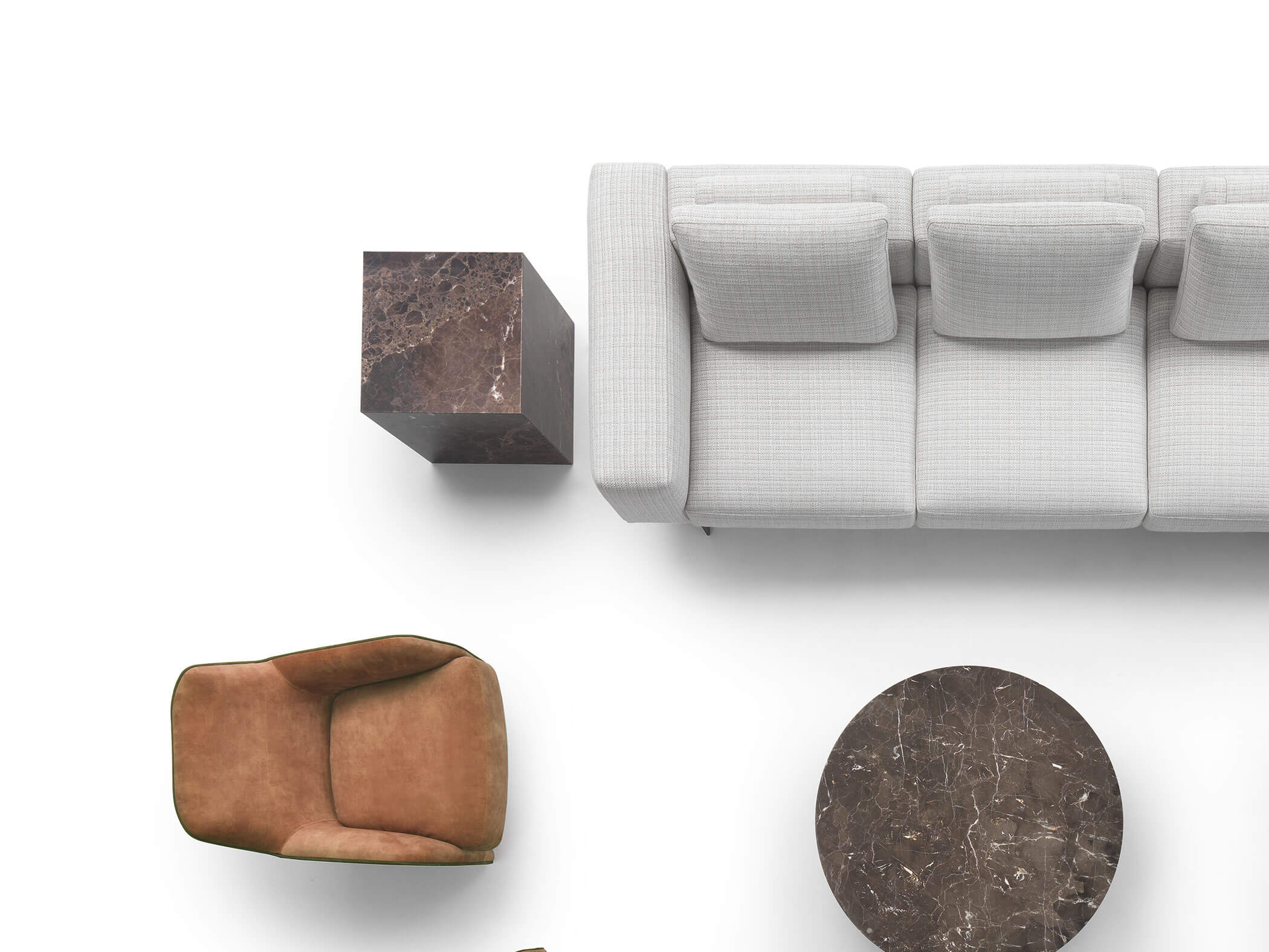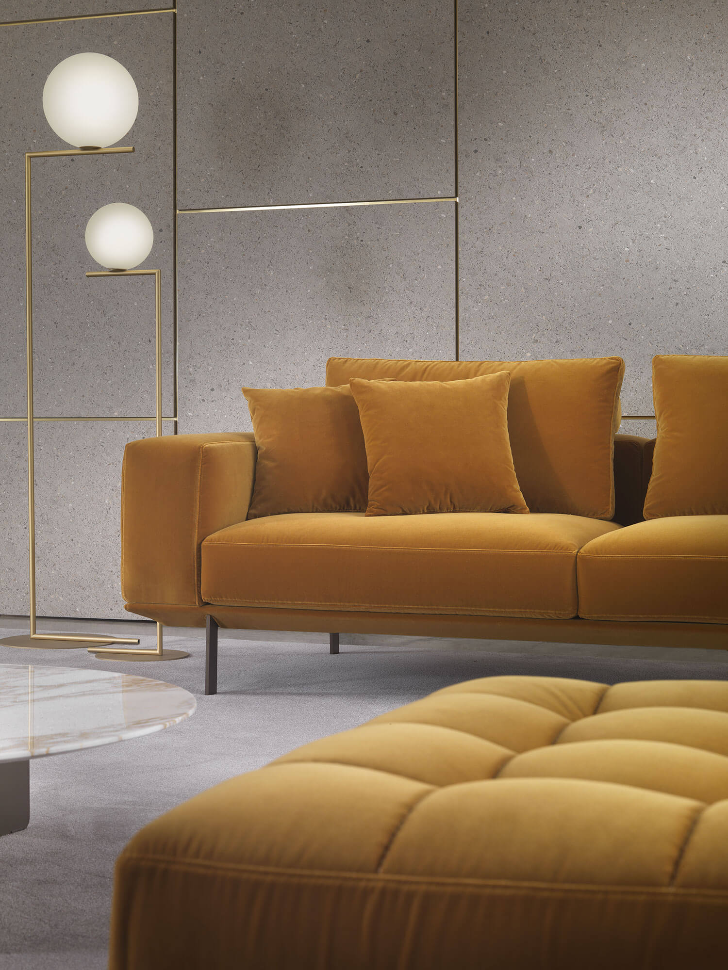 Richard沙發系列秉承輕盈、簡約且舒適的設計概念。纖細的底座由輕盈的金屬腳支撐,穩固地托起扶手、座墊和靠背。沙發線條幾何感十足,方正勻稱,比例協調,營造出現代簡潔的設計感。