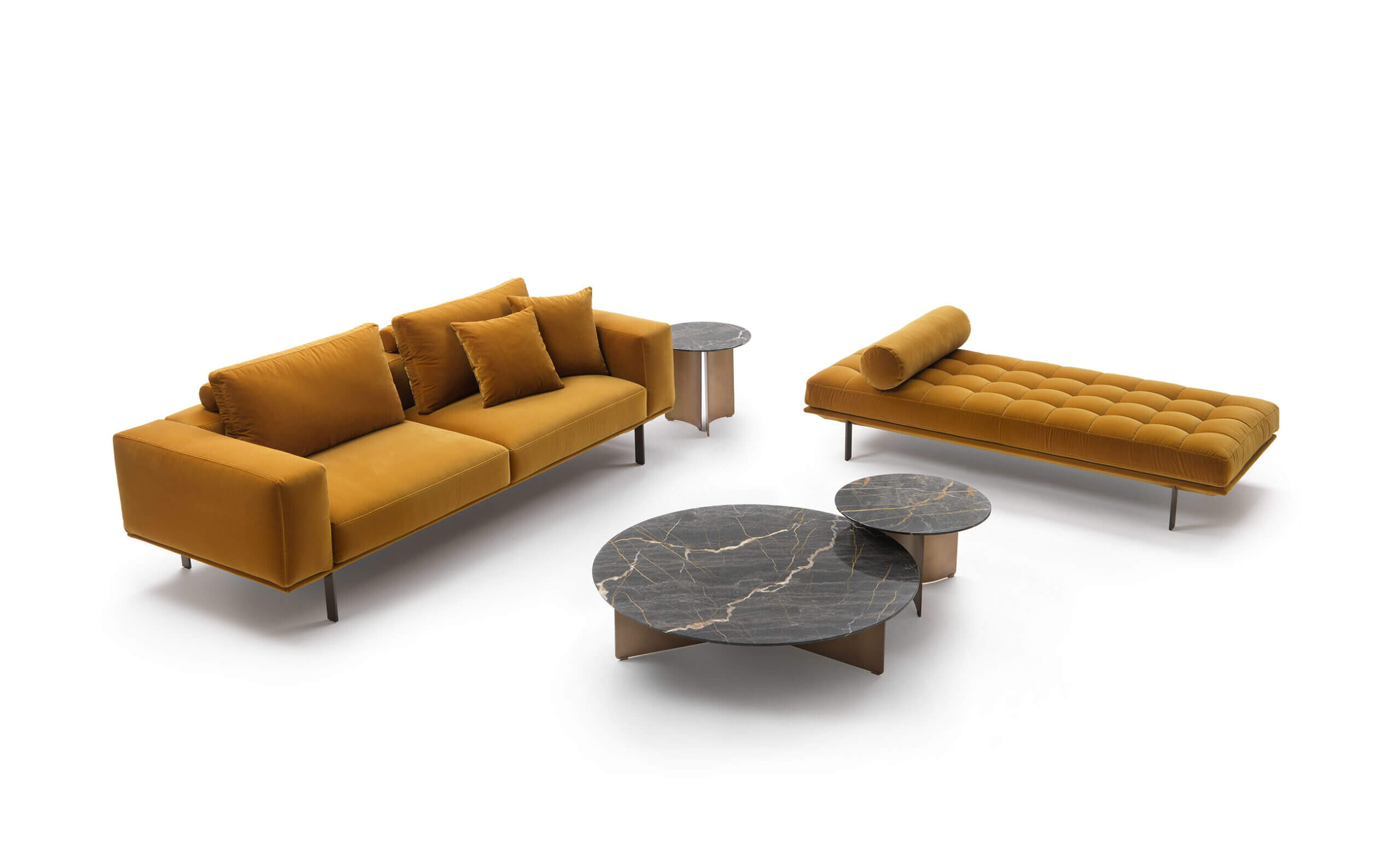 Richard沙發系列秉承輕盈、簡約且舒適的設計概念。纖細的底座由輕盈的金屬腳支撐,穩固地托起扶手、座墊和靠背。沙發線條幾何感十足,方正勻稱,比例協調,營造出現代簡潔的設計感。