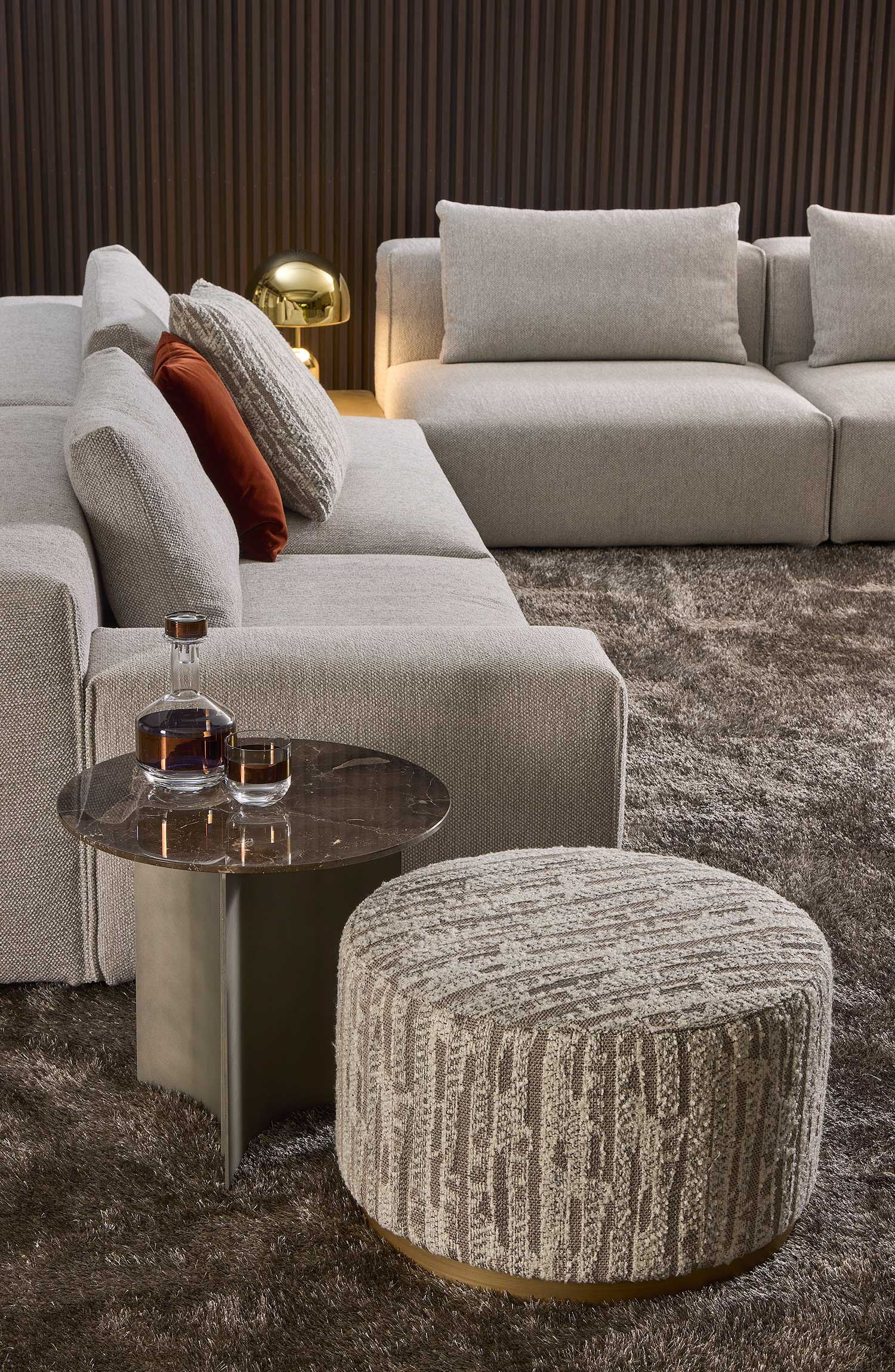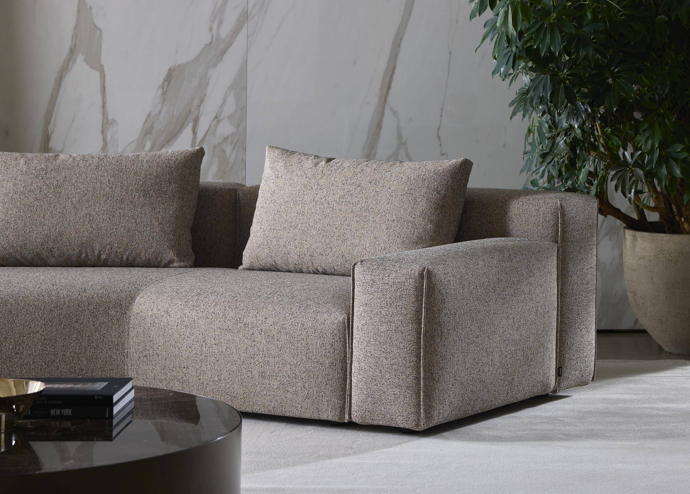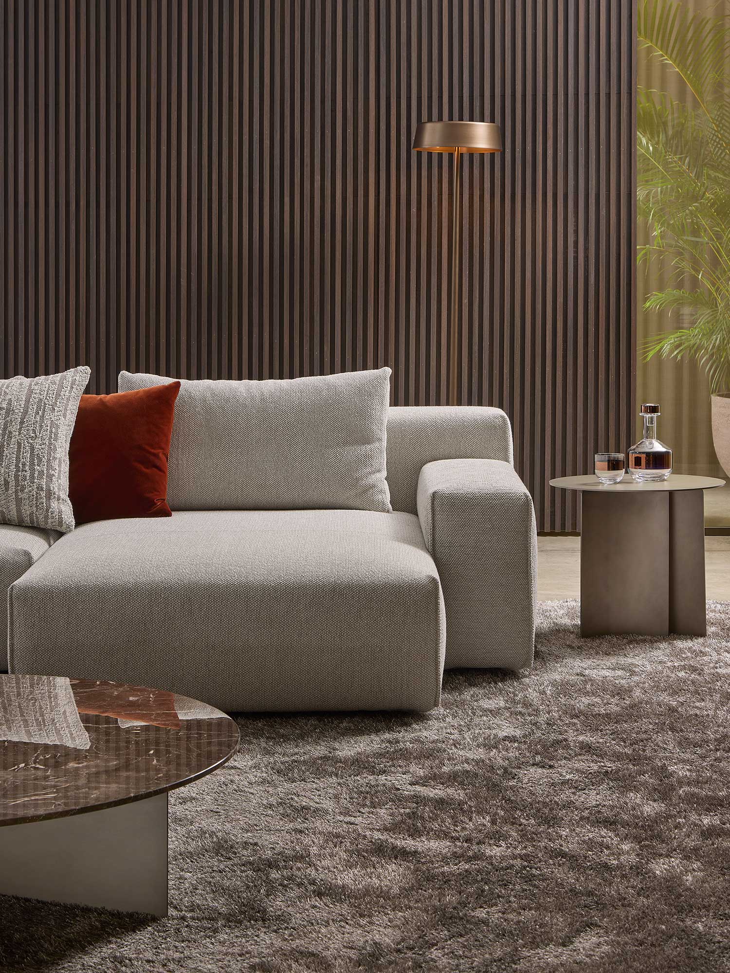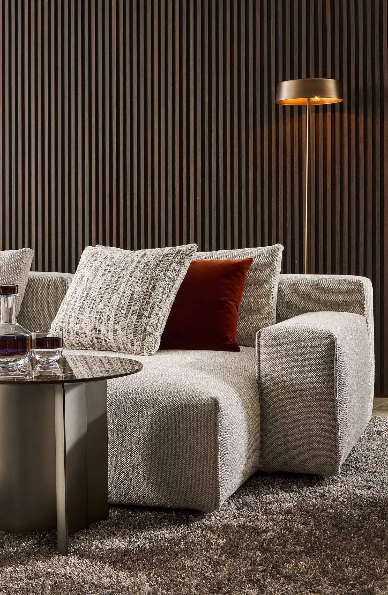 Yann以其卓越的舒適度和對細節的精益求精而著稱。垂直包邊縫線是其標誌性元素,為設計增添了精緻的質感。如果您追求更具創意的解決方案,還可以選擇非直線型轉角組件,打造動感十足、視覺衝擊力強的組合。