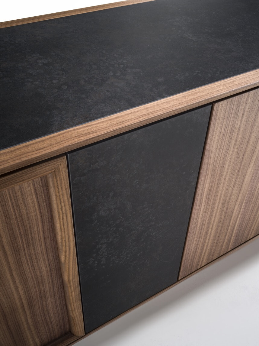 框架:實木和卡納萊托胡桃木貼面 / 實木和橡木貼面 / 實木和黑橡木貼面 / 實木和紅木貼面。 檯面:實木和卡納萊托胡桃木貼面 / 實木和橡木貼面 / 實木和黑橡木貼面 / 實木和紅木貼面 / 瓷質陶器。 門:實木和卡納萊托胡桃木貼面 / 實木和橡木貼面 / 實木和黑橡木貼面 / 實木和紅木貼面 / 黃銅 / 瓷質陶器。