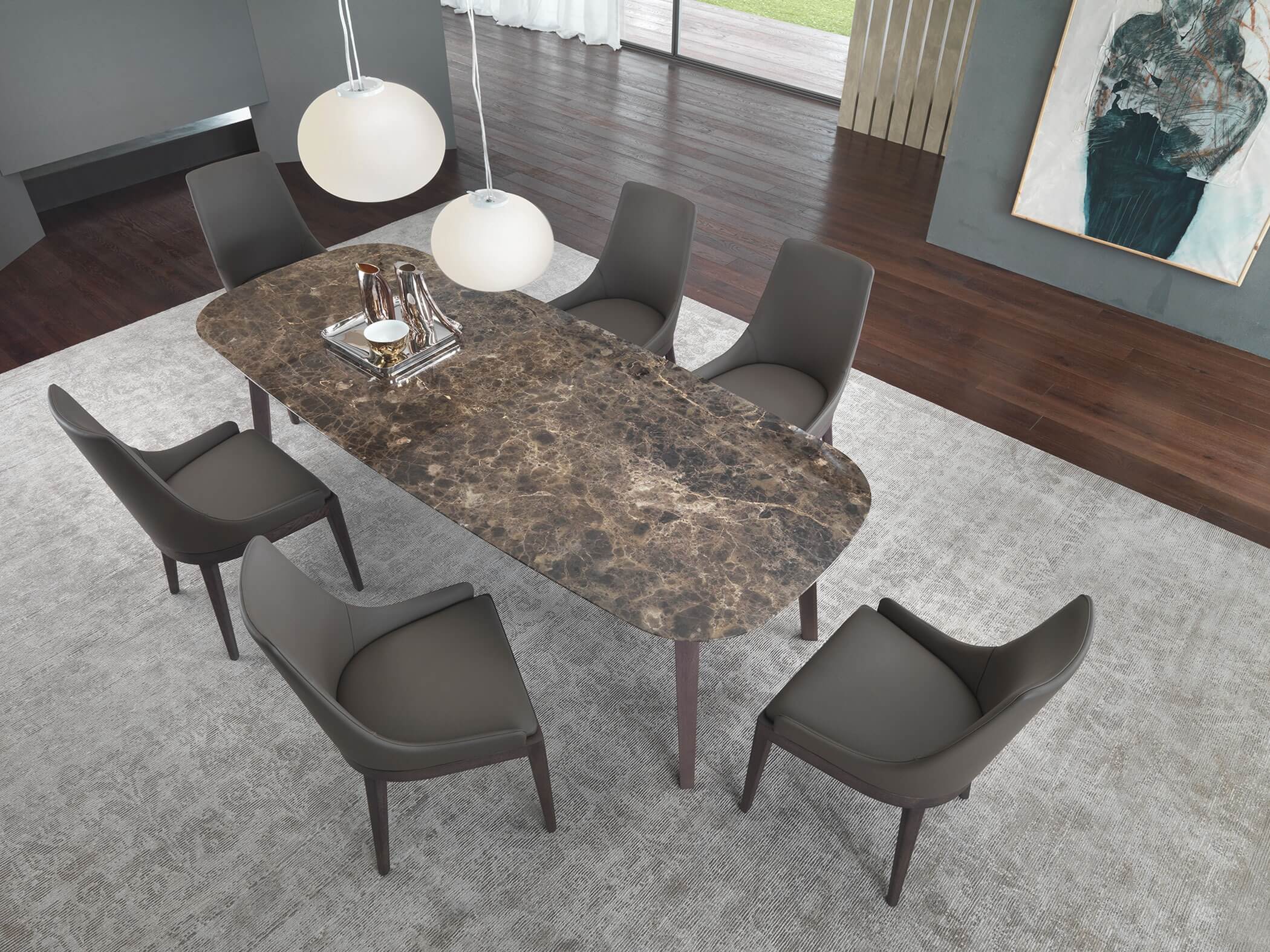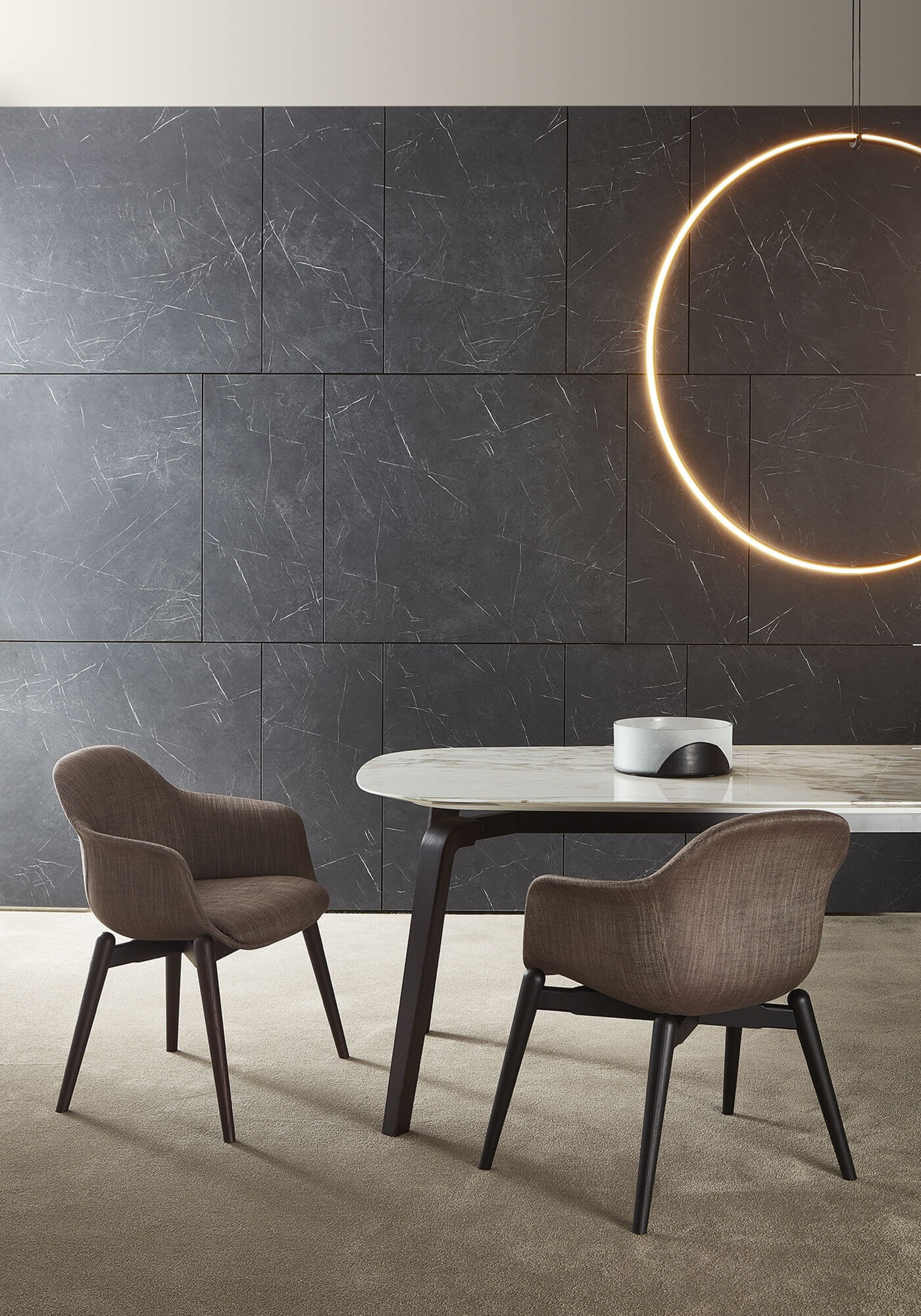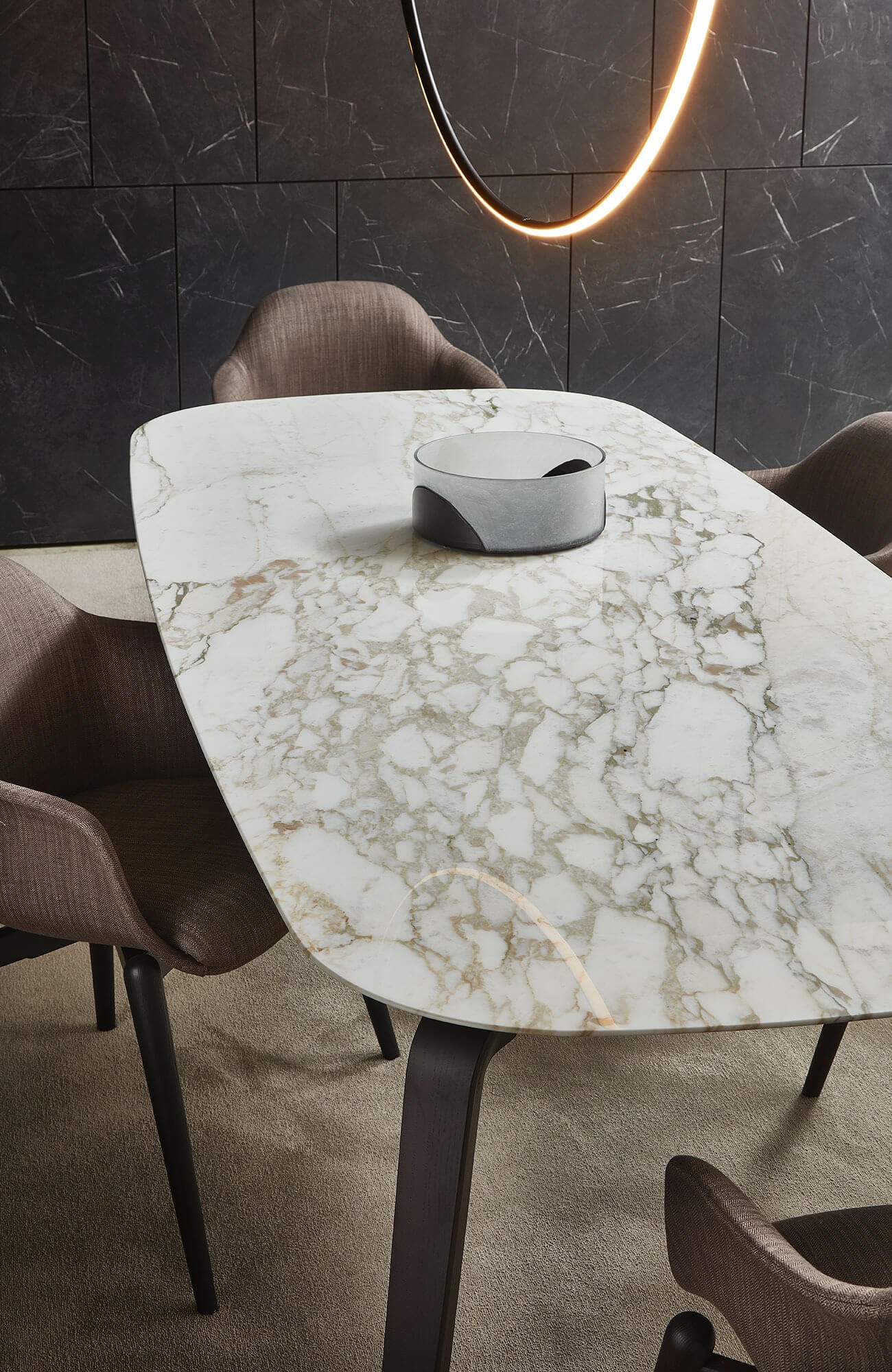 圓角矩形桌面在不影響功能的前提下,增添了一絲精緻優雅的氣息。桌面飾面經過精心打磨,展現出精湛的工藝。桌腳採用實木包裹的金屬材質,工藝精湛。此外,您還可以從多種桌面材質中進行選擇,包括木材和大理石,並提供豐富的飾面選擇。