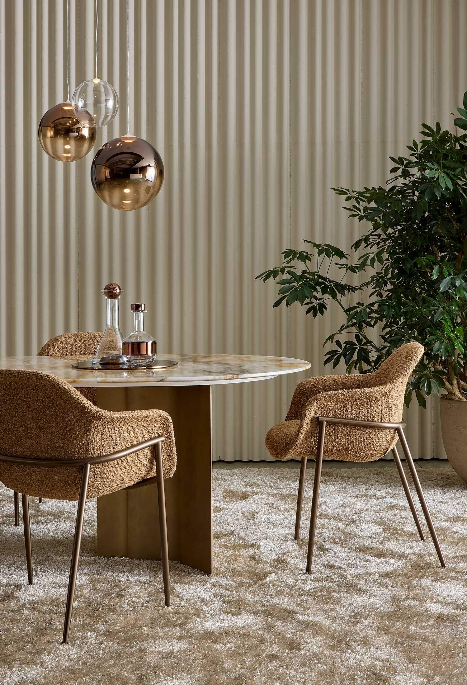 Wave系列餐桌和咖啡桌以其雕塑般的造型和卓越的百搭性而著稱,能夠為任何環境帶來輕盈與和諧之感。該系列最顯著的特點在於其精巧的弧形桌腳設計,巧妙地營造出豐富的體量感,與簡約的桌面形成對比,賦予桌子引人注目的視覺平衡。