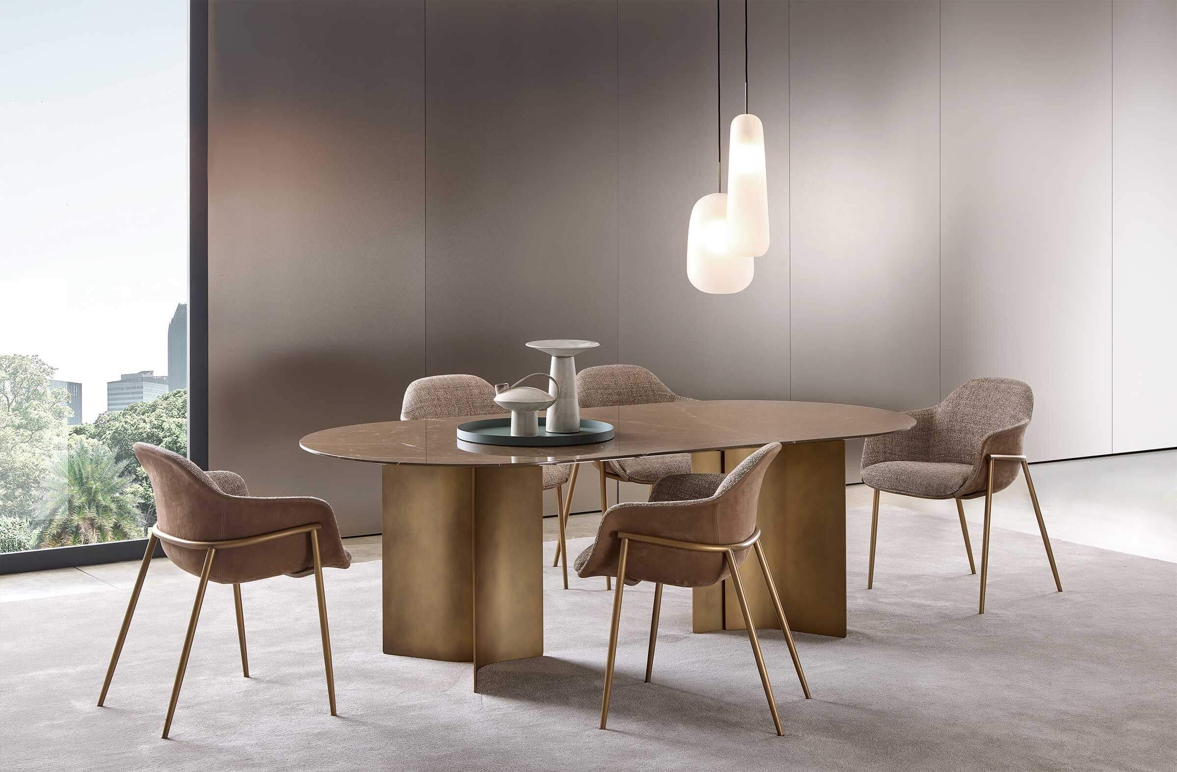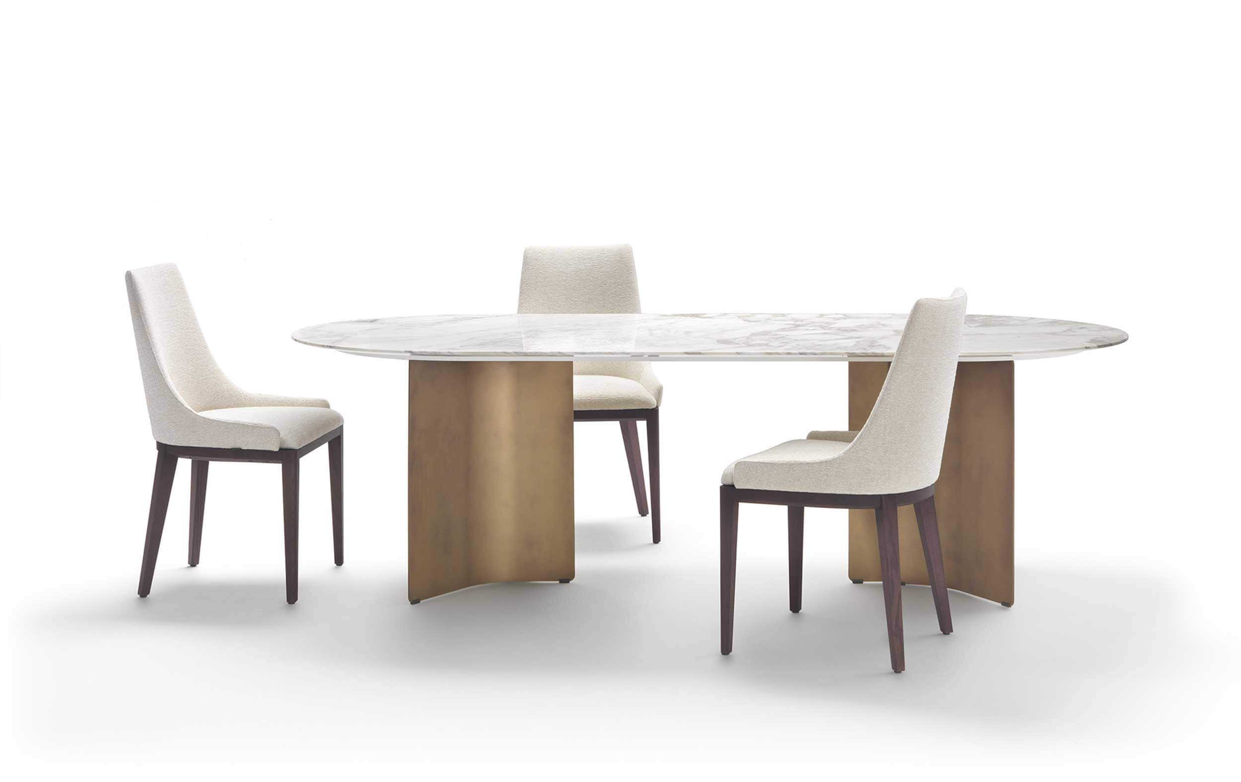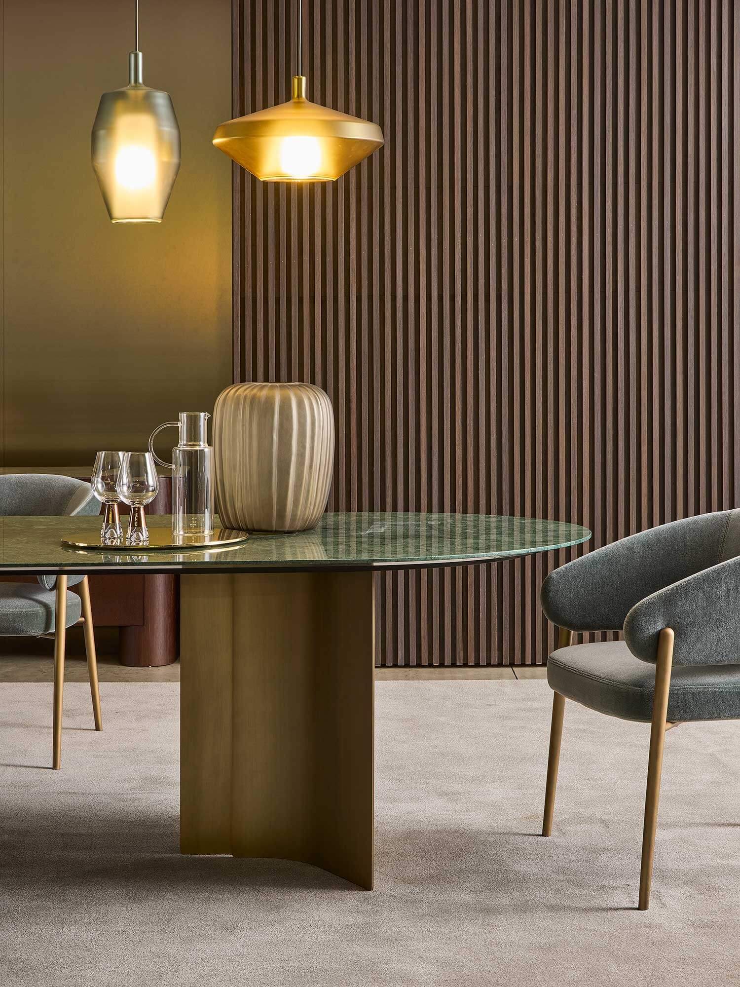 鋼製桌腳採用全新精緻的Delabrè或Pewter金屬飾面,進一步提升了整體美感,並確保了結構的穩固性。