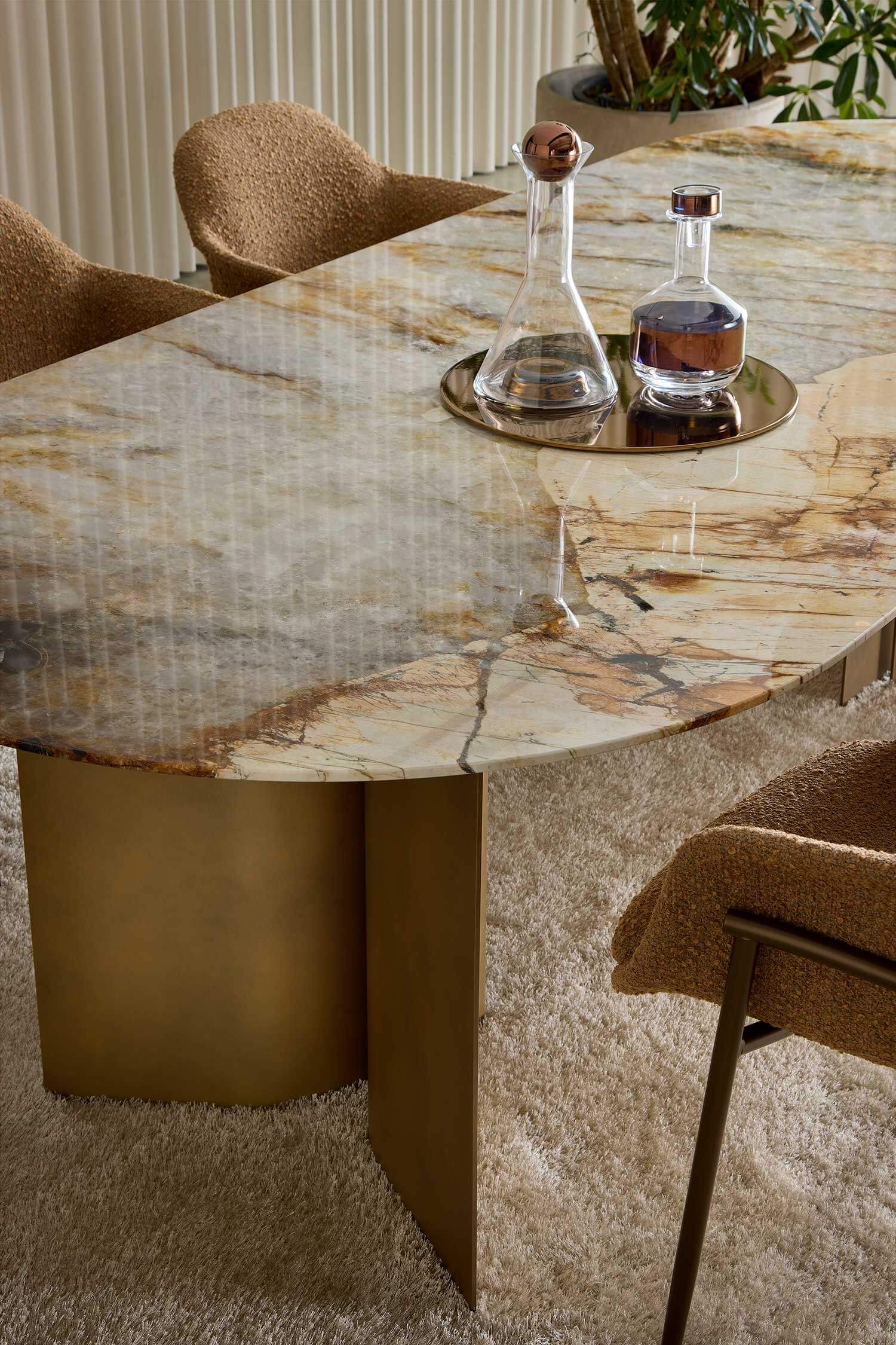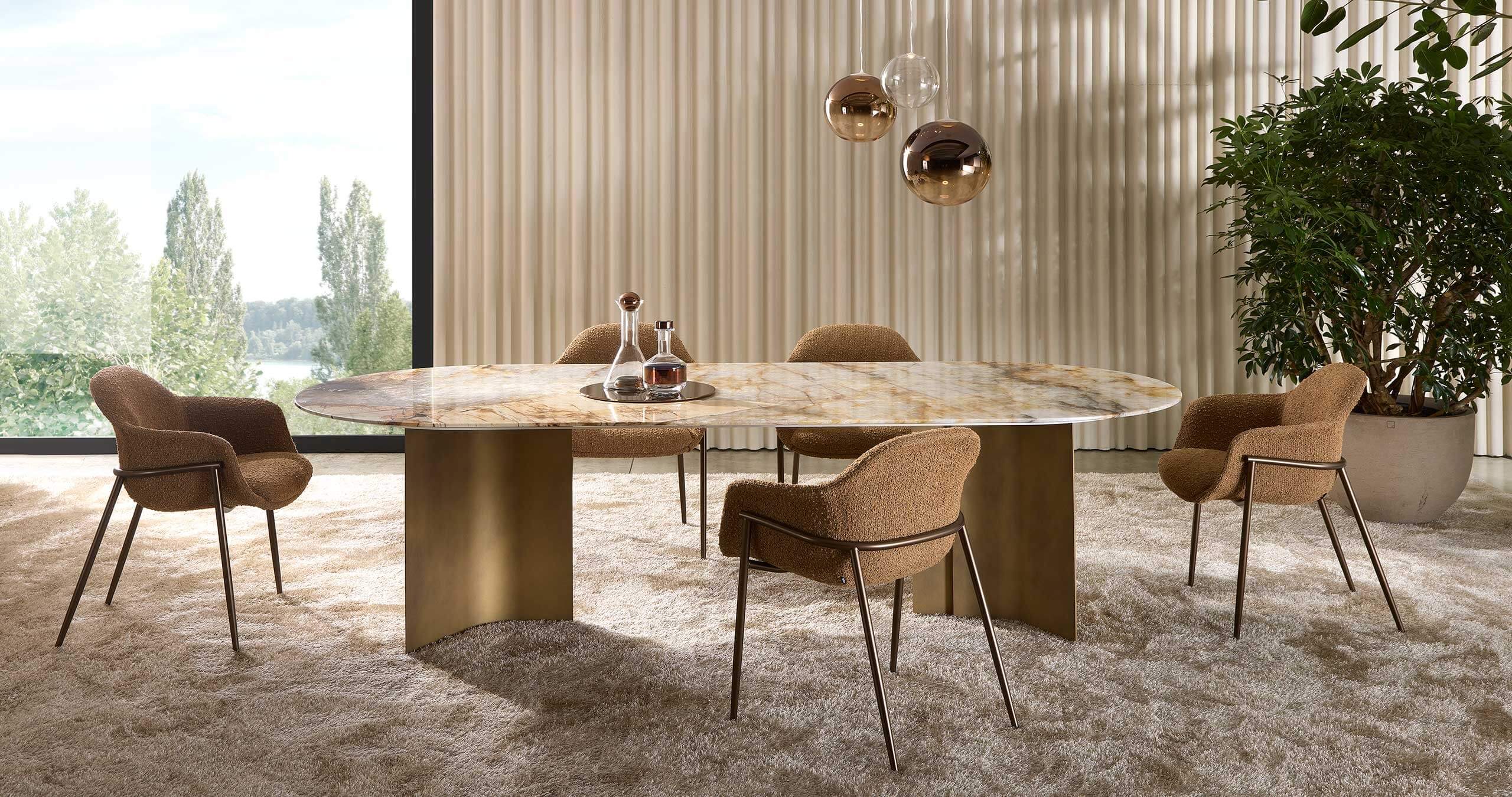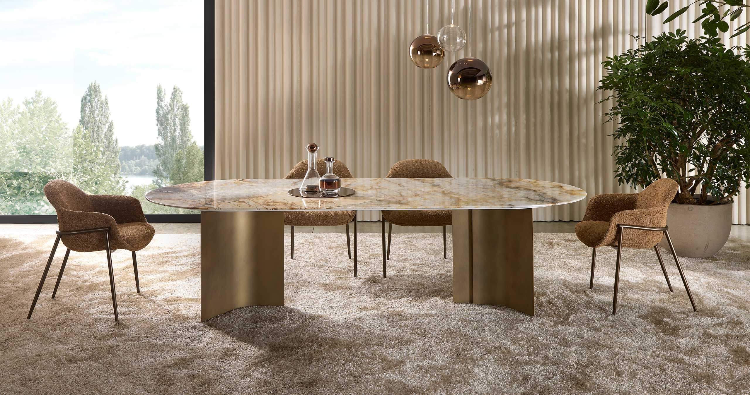 桌面可選18種珍貴大理石,並提供矩形或圓形兩種形狀,可滿足不同風格的客製化需求。大理石的選擇提升了該系列的精緻感,賦予其永恆的優雅氣質。